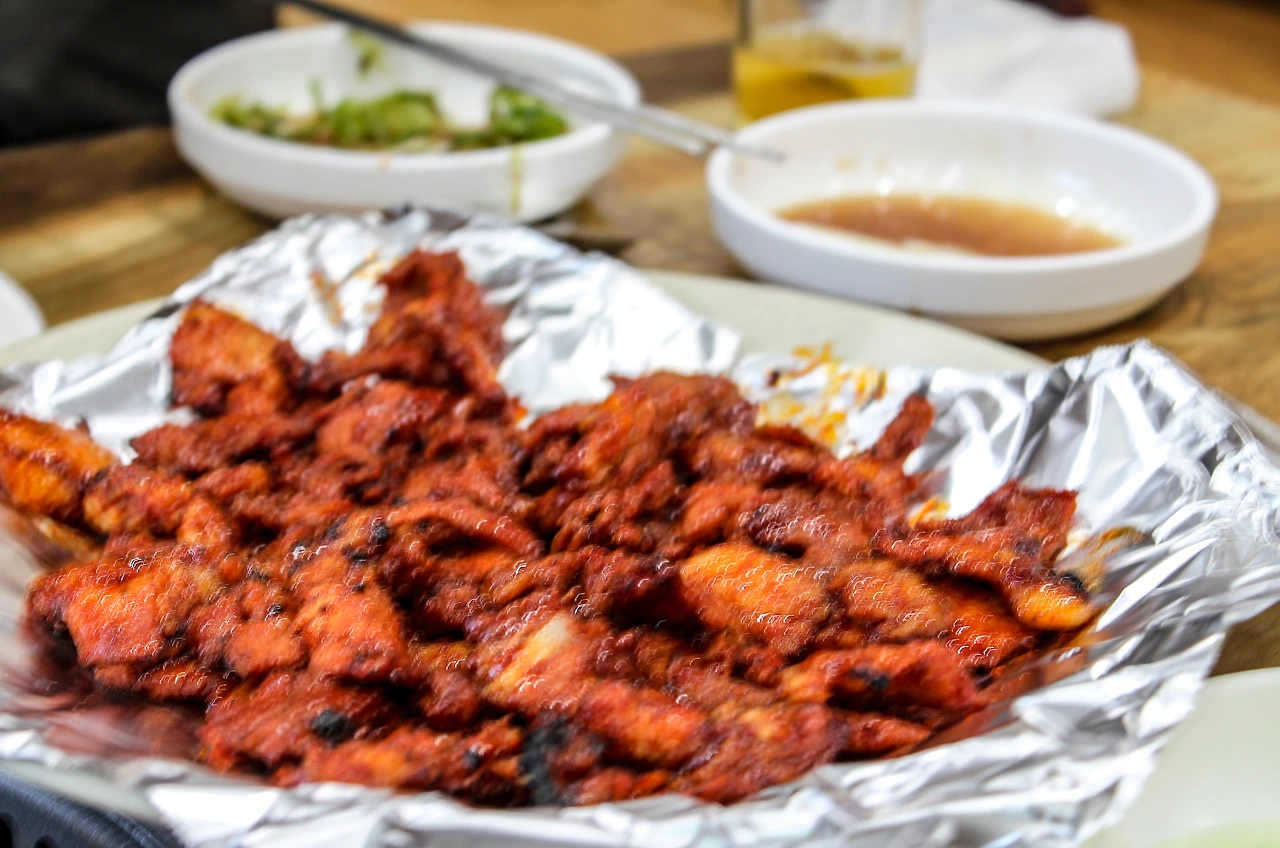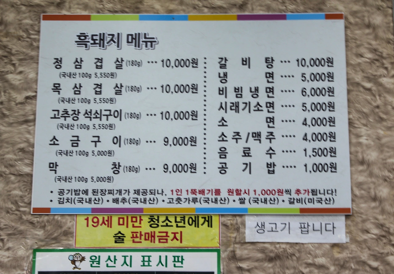 어딜 돌아보아도 지례 흑돼지 고깃집이 눈에 들어온다. 옛날에 임금님께 진상되던 고기로 일반 돼지보다 사육기간이 3개월 더 길어서 구웠을 때 고기가 쫀득하고 육즙이 고소한 것이 특징이라고 한다.