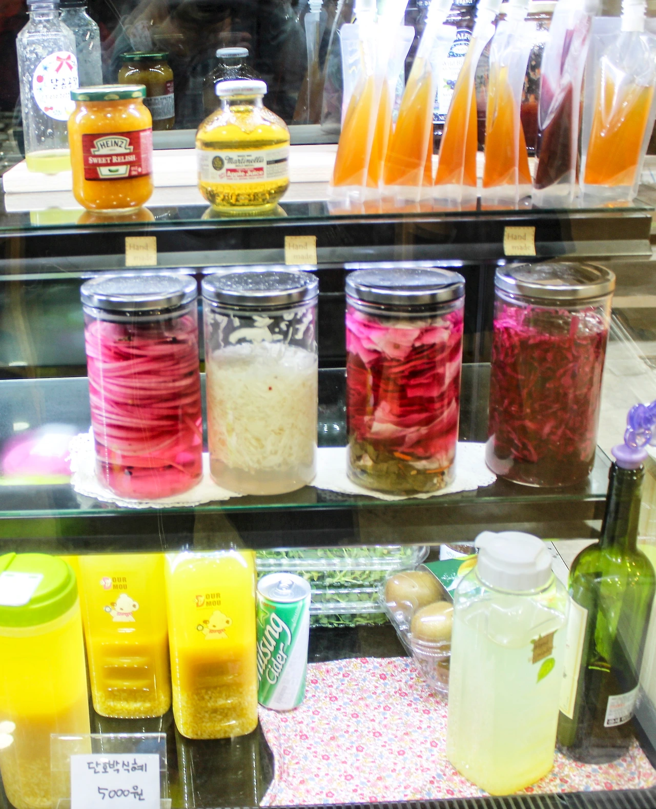직접 내린 유기농 주스, 단호박식혜, 각종 피클