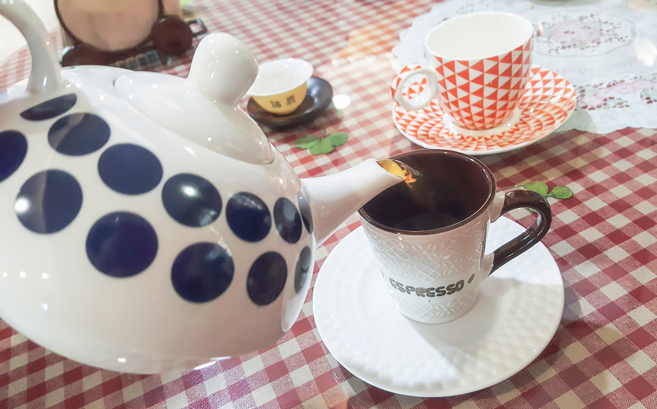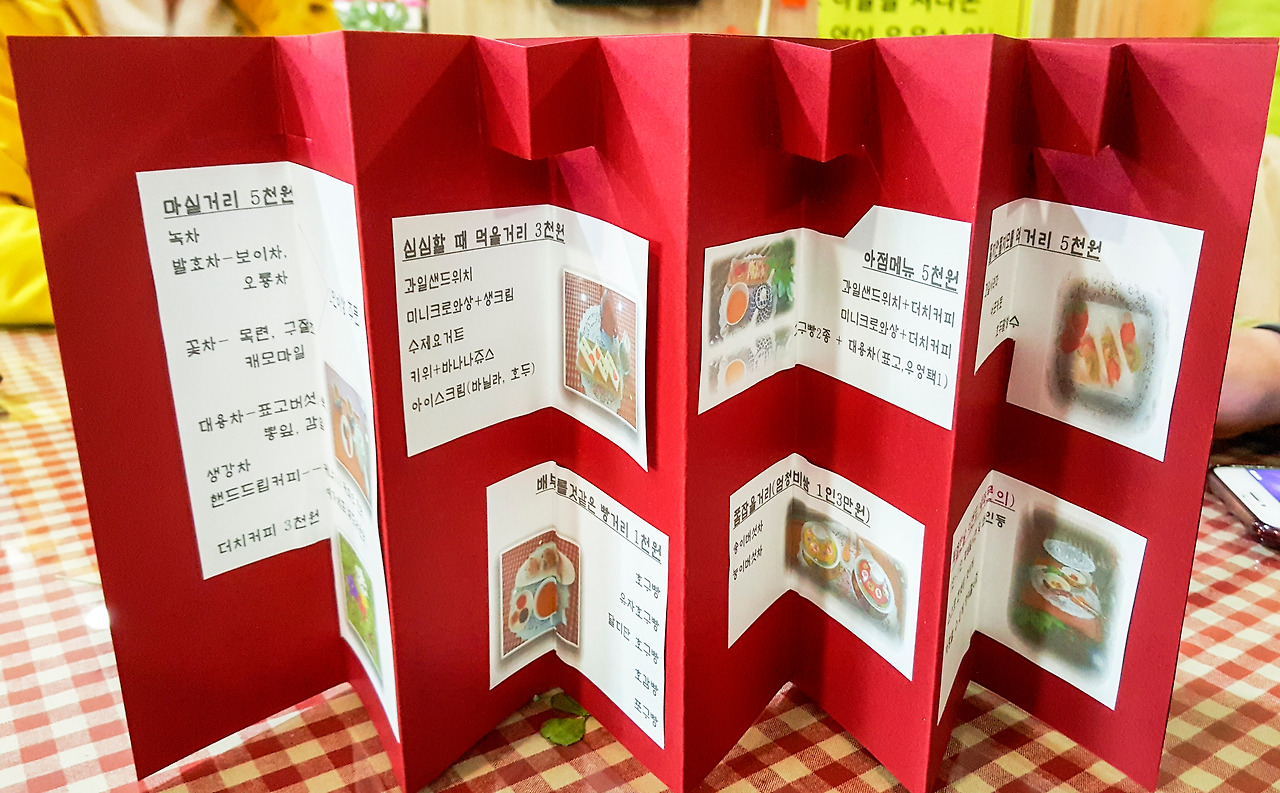 카페에 들어가면 아기자기하면서도 곳곳에서 독특한 인테리어로 눈길을 끄는 것들이 많다. 메뉴로는 꽃차, 발효차, 버섯차, 과일주스, 커피 등과 샌드위치와 빵... 메뉴가 푸짐하다.