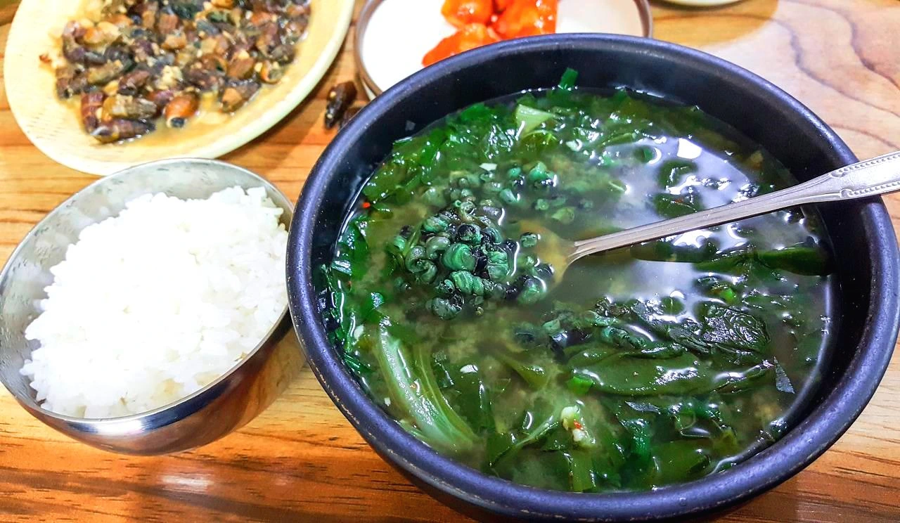 올뱅이국밥. 올뱅이 부침개. 올뱅이 무침