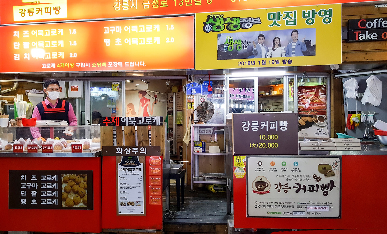 <강릉 중앙시장>의 호떡집, 닭강정, 빈대떡...