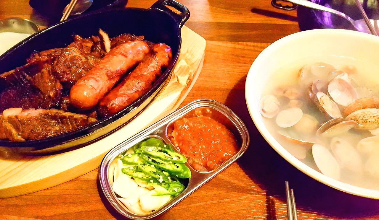 그릴에 구운 고기와 소시지, 그리고 맑은 조개탕도 시원하고 개운하다. 보라카이 맥주를 맛볼 수 있는 곳.