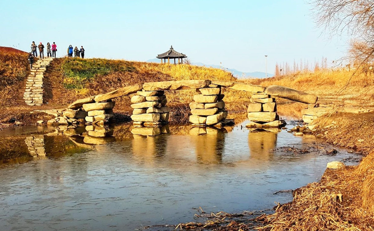 800여 년 전 강 양쪽의 주민들이 힘을 합쳐 만든 돌다리인데 자연 속에 그대로 스며드는 아련한 풍경이다. 걸으며 힐링할 수 있는 시간이다. 경상남도 문화재 자료 225호다.