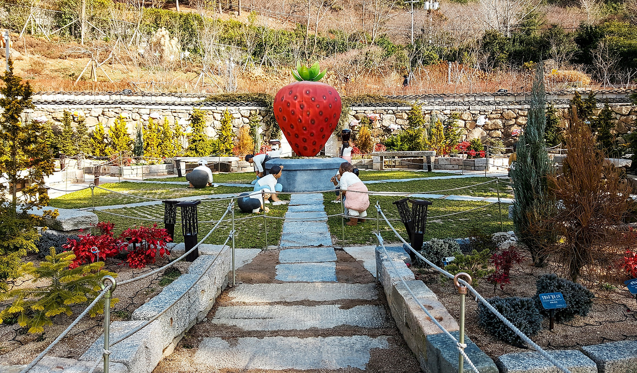 평화로운 산책길에 싱그러운 색감과 이쁜 조형물들이 생동감 있는 즐거움을 준다.