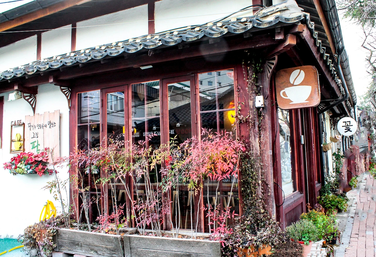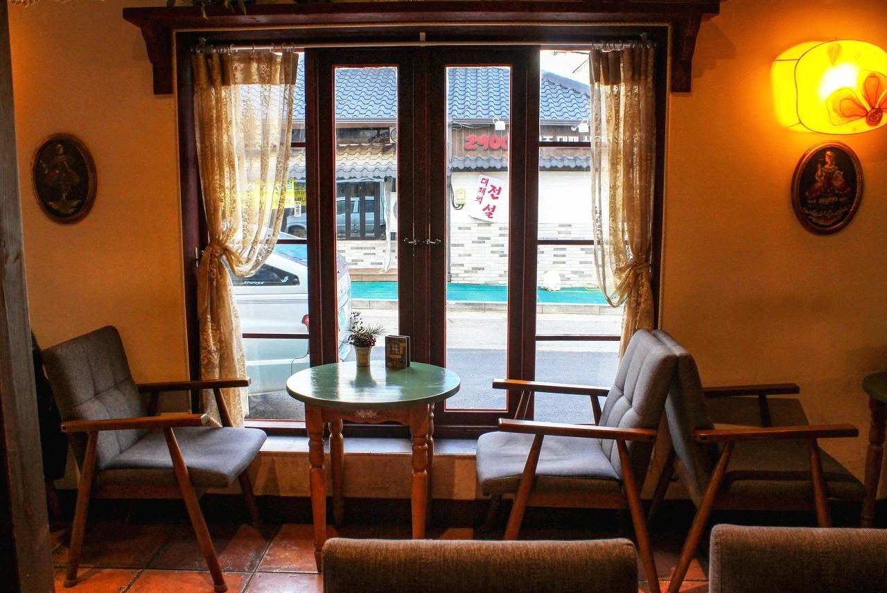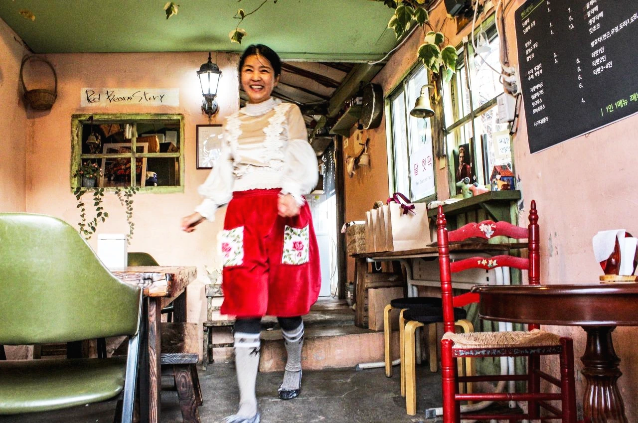 조금 더 가다가 사람들이 기웃거리기에 나도 들여다보니 그 옛날의 감성이 그대로 간직된 자그마한 카페 <포도나무집>이다. 그에 걸맞은 패션의 주인장이 환하게 웃으며 나온다. 적산가옥인 카페 '포도나무집'이나 '팥 이야기' 역시 세월의 흔적이 고스란히 남아있는 곳에서 편안히 잠깐 쉬어가도 좋겠다.