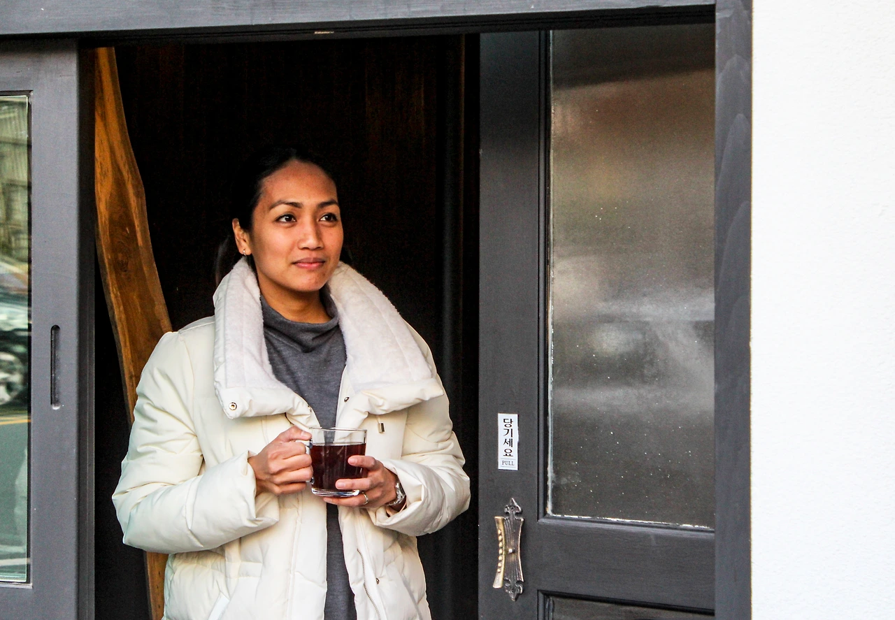 카페 인테리어 공사를 하고 있던 유경아 씨의 지인께서 유학 중 만나 결혼한 외국인 부인을 소개한다. 매력적인 부인이 찻잔을 들고 창가에 나오니 남편께서 자랑스럽게 손잡는다. 이쁜 부부~