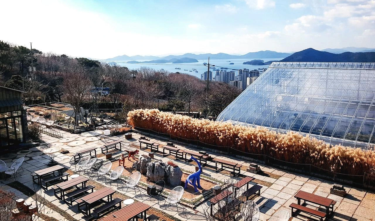 식물들이 에워싼 정원을 바라보는 창가에 앉아 좋은 사람과 시간을 보내거나, 넓은 창을 통해 진해 앞바다를 바라보며 쉴 수 있는 계단식 쉼터가 인상적이다.