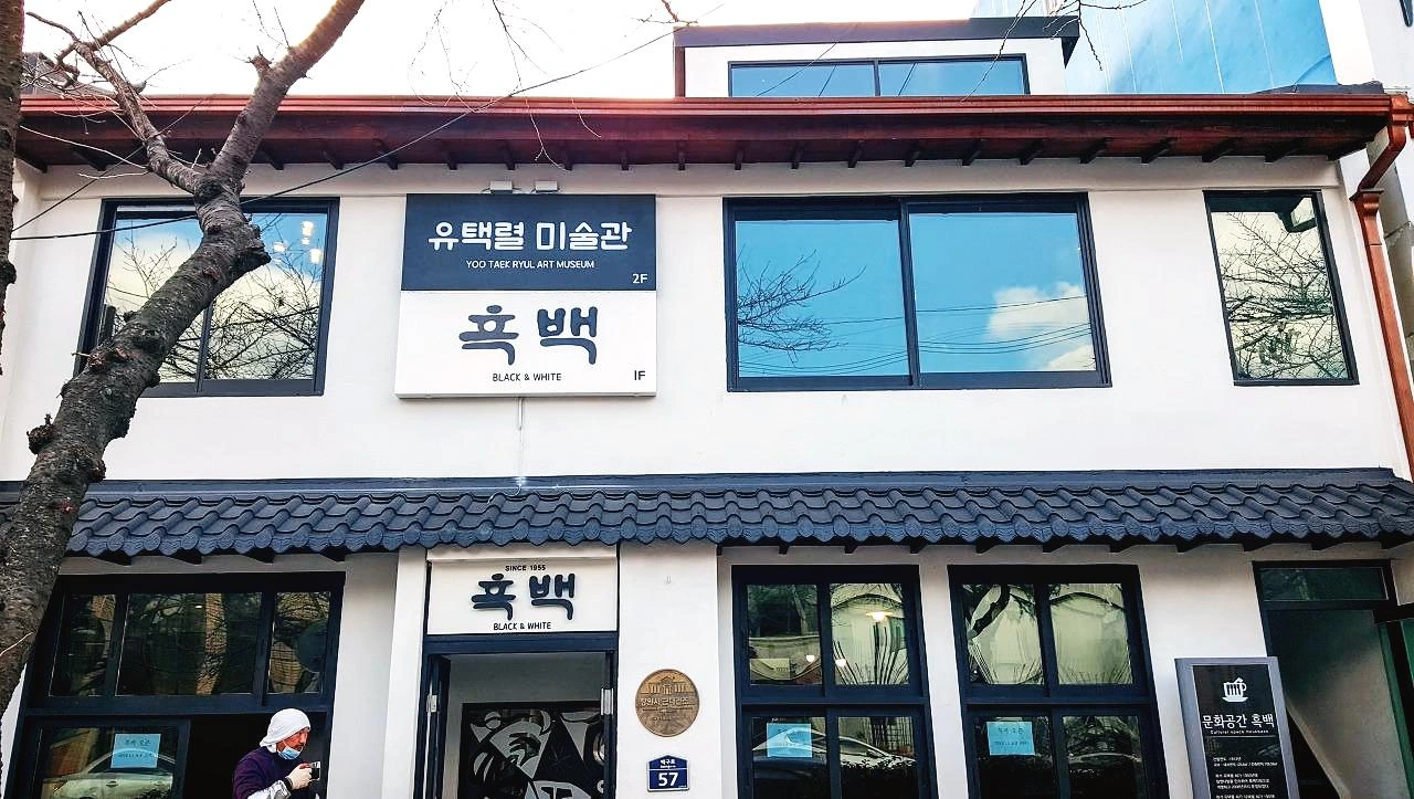2층짜리 적산가옥을 개조해서 만든 <흑백>은 1912년에 건립되었다. 당시 작곡가 이병걸이 운영하던 고전음악다방을 유택렬 화백이 인수했다. 그 후 흑백다방으로 이름을 바꿔 음악회와 미술 전시회를 개최하며 60, 70년대에 진해 문화의 중심지가 되었던 곳이다. 유화백 시절부터 인기 있던 모카커피의 맛을 기억하는 여행자들이 지금도 찾아온다고 한다. 현재는 피아니스트인 그의 딸 유경아 씨가 문화공간으로 활용 중이다. 영화 '화차' 촬영지라고 한다.