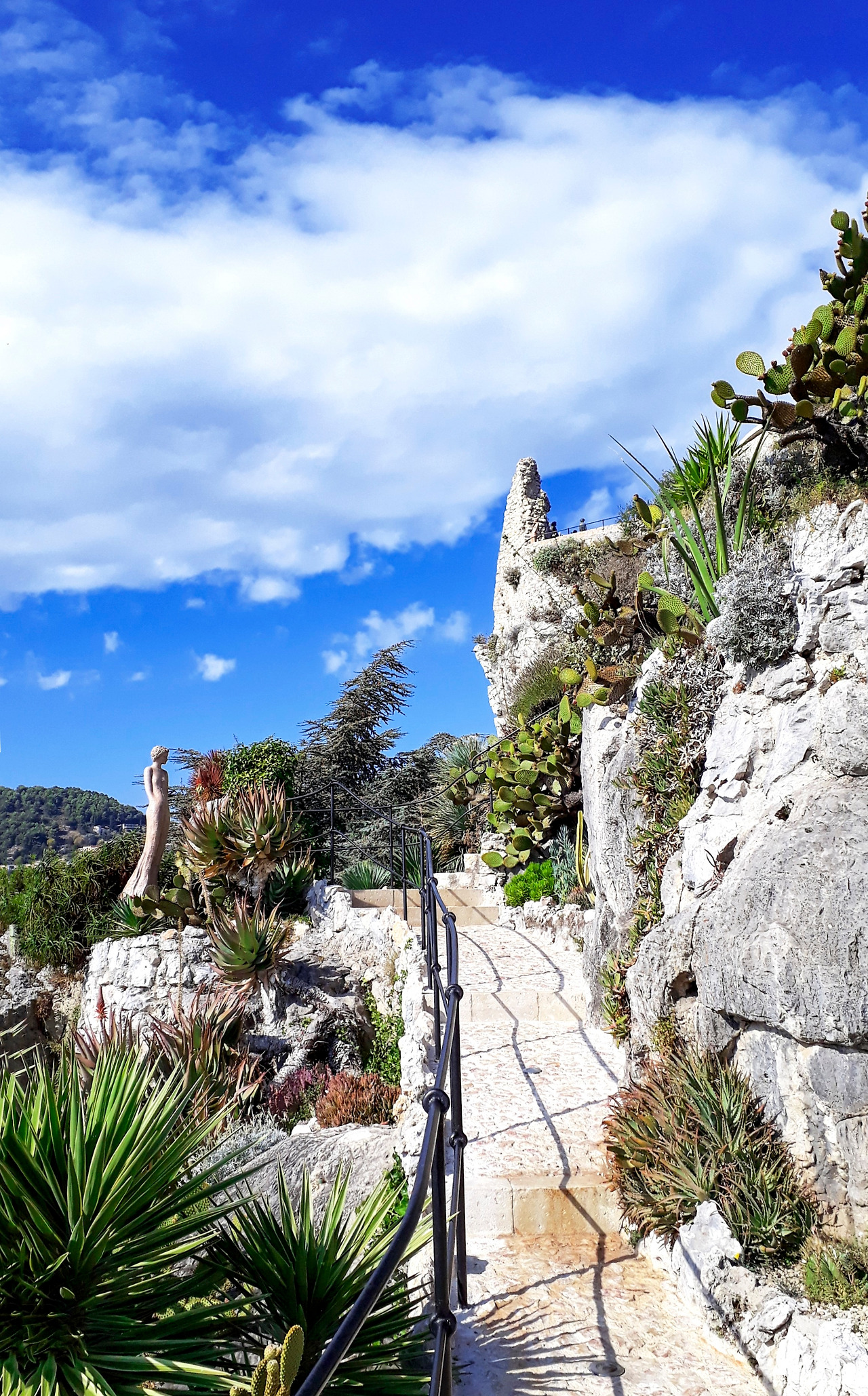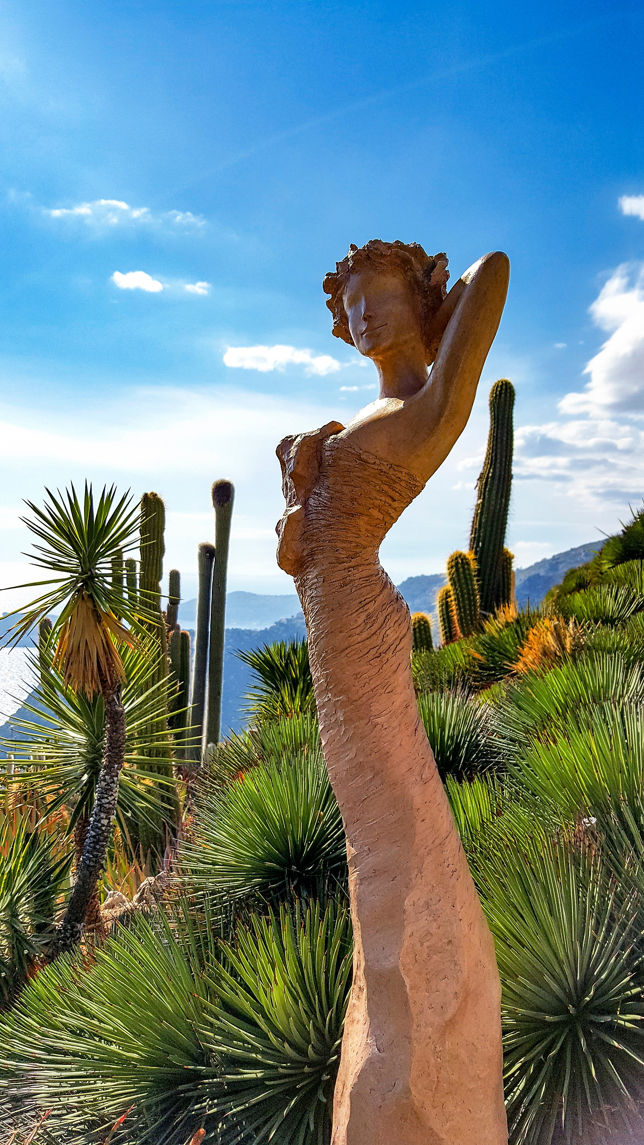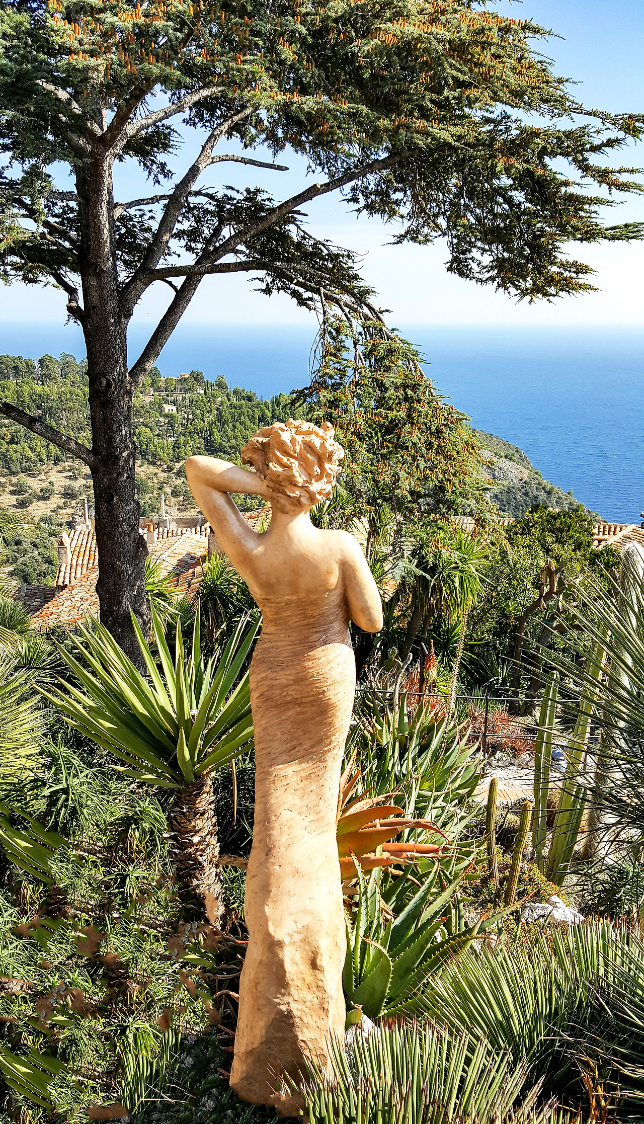 걸으며 만나는 가시를 뻗치고 있는 다양한 선인장과 여신의 조형물들이 이 마을의 수호신이 아닐지 하는 생각이 든다. 마을정원에 뿌리내리고 저렇게 지중해를 지키고 있구나 하는...