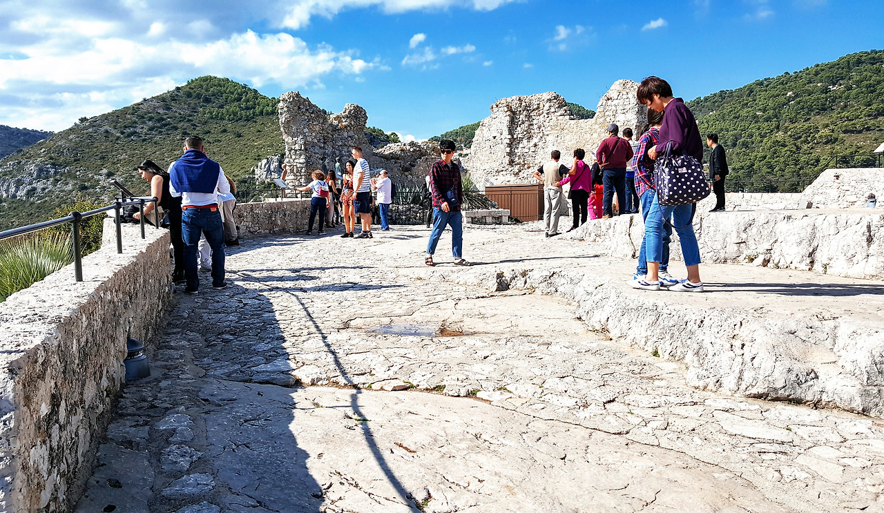 사방을 빙 돌며 파노라마 전경을 바라보느라 가슴이 벅차다. 가슴이 뻥 뚫린다. 절벽 아래 붉은 지붕의 마을이 해안선의 아름다운 결을 따라 평화롭다. 발아래 지중해가 그렇게 아무렇지도 않은 듯 내 눈앞에 펼쳐놓은 건 누구일까. 내가 본 지중해 풍경 중에서 최고다.
