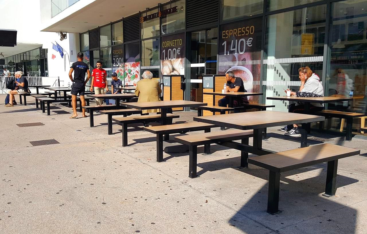 길거리 노천카페는 이미 테이블 세팅을 마치고