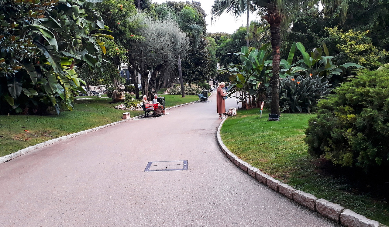 몬테카를로로 가는 길에 있는 열대 정원 Jardin Exotique에는 주민인듯한 사람들이 산책하거나 벤치에 앉아 휴식 중인 모습이다.