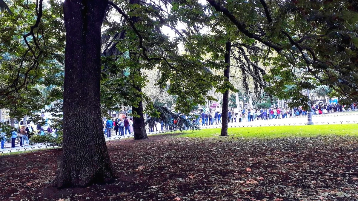 가는 도중에 군데군데 공원을 들여다보기도 하면서 사진도 찍으며 쉬어야 했다. 우툴두툴한 길에 여행가방 바퀴 돌아가는 요란한 소리를 들으며 걷다 보니 기차 안에서 얻었던 평화롭던 마음이 점점 사라져 간다. 게다가 프라도 미술관 앞엔 엄청난 사람들이 줄을 서 있었다. 기다려야 한다는 것은 언제나 시작부터 설렘보다는 지루함이다.