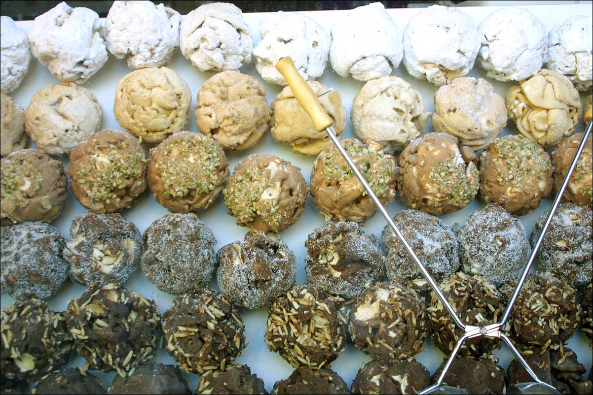 아들아이가 과자인지 초콜릿인지 빵인지 구별하기 어려운 정체를 알 수 없는 걸 사달래기에 서 너개 사줬는데 그것이 바로 이 도시의 특산물인 슈니쿠켄이라는 Snow Ball 이란 것이었다. 사실은 크리스마스 시즌에 독일 곳곳에서도 파는 걸 본 적이 있다. 그런데 다양한 입맛에 길들여져 있는 현대를 사는 아이 입맛에는 잘 맞지 않는 모양이었다. 단단해서 망치로 두드려 먹는다는 말이 있듯이 겉에 바른 달콤한 쵸코나 슈가파우더 맛을 빼면 특별한 맛이 없는 담백함에 퍽퍽한 느낌까지 사실 별 맛은 없었다. 먹지 않은 것이 다음날까지 가방에 들어있었으니까.