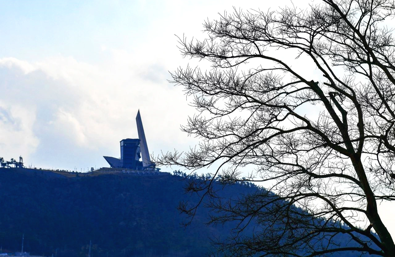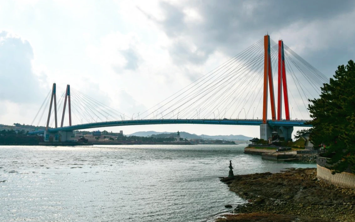진도대교 아래 충무공이 울돌목을 내려다보는 모습이 인상적이다.
