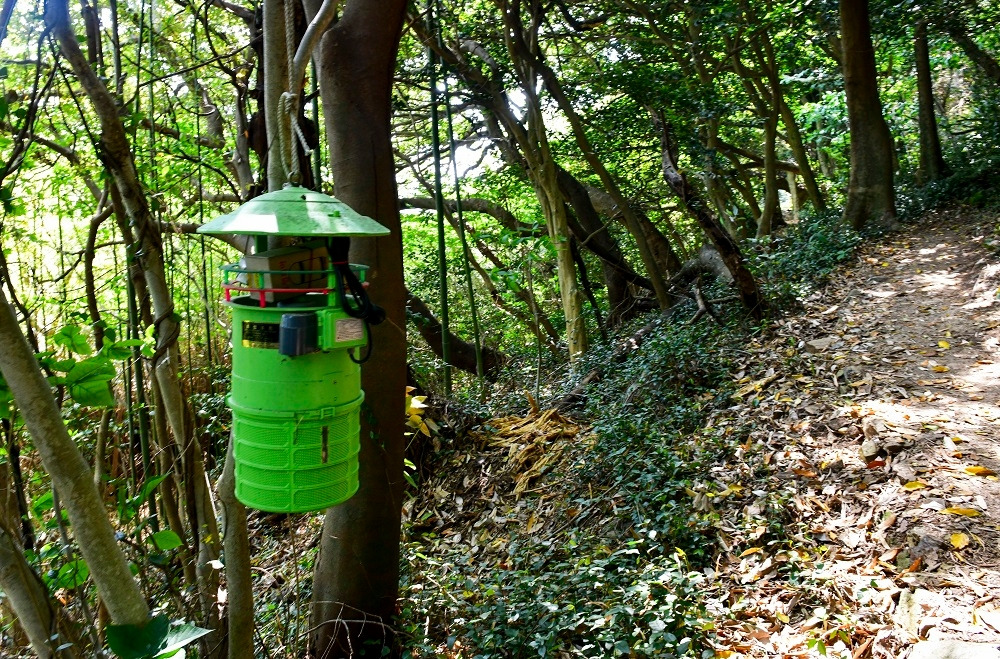 해충퇴치를 위해서 탐방로를 따라 군데군데 포충기가 매달려 있다.