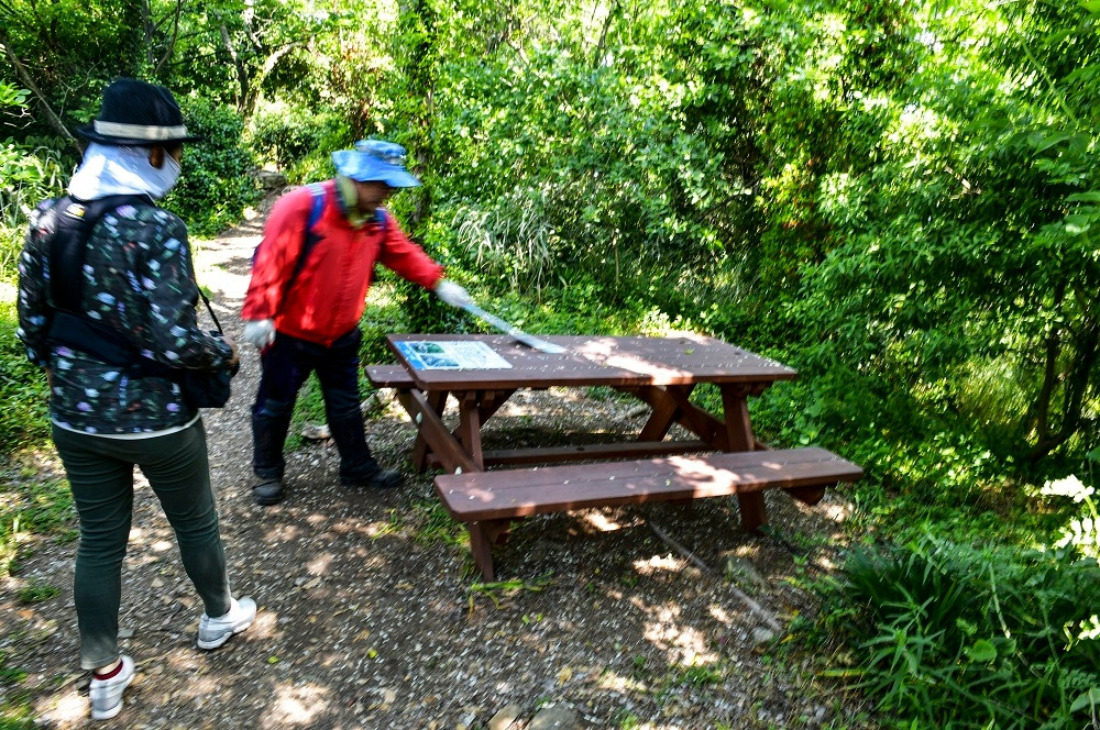 `쑥섬을 위해 자그마한 기부를 해주신 분의 성의로 만들어 놓은 탁자라고 했다. 밑에 매달린 빗자루로 탁자 위를 쓸어내리시고 지나가신다.