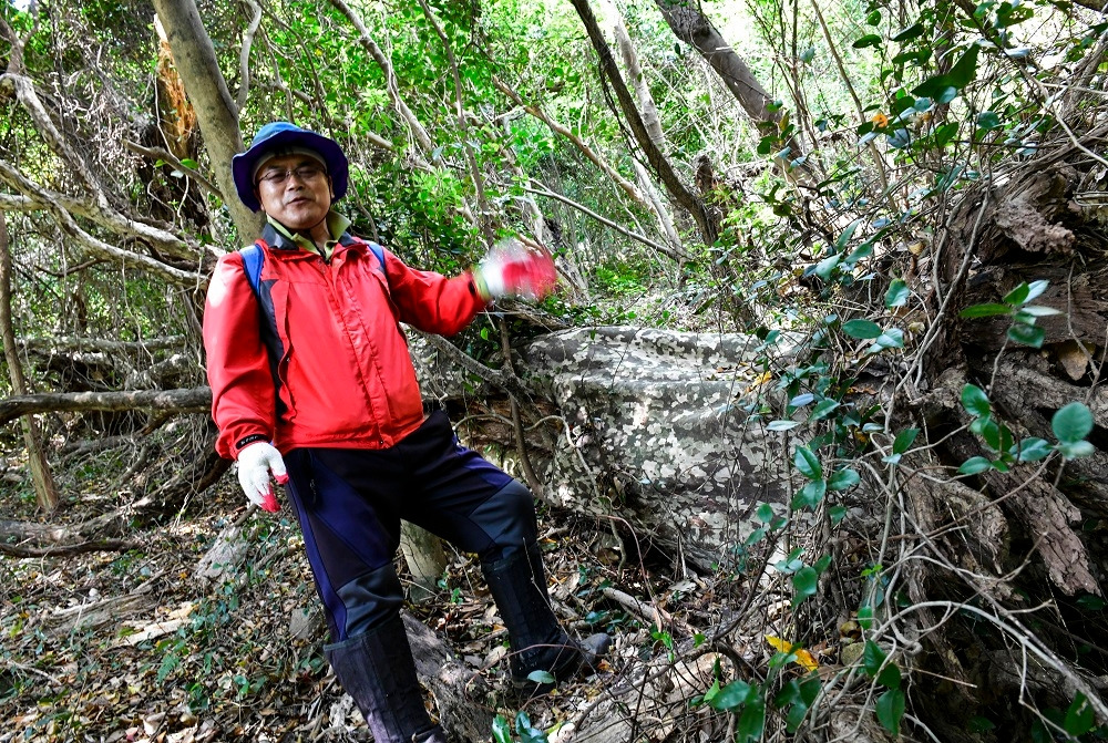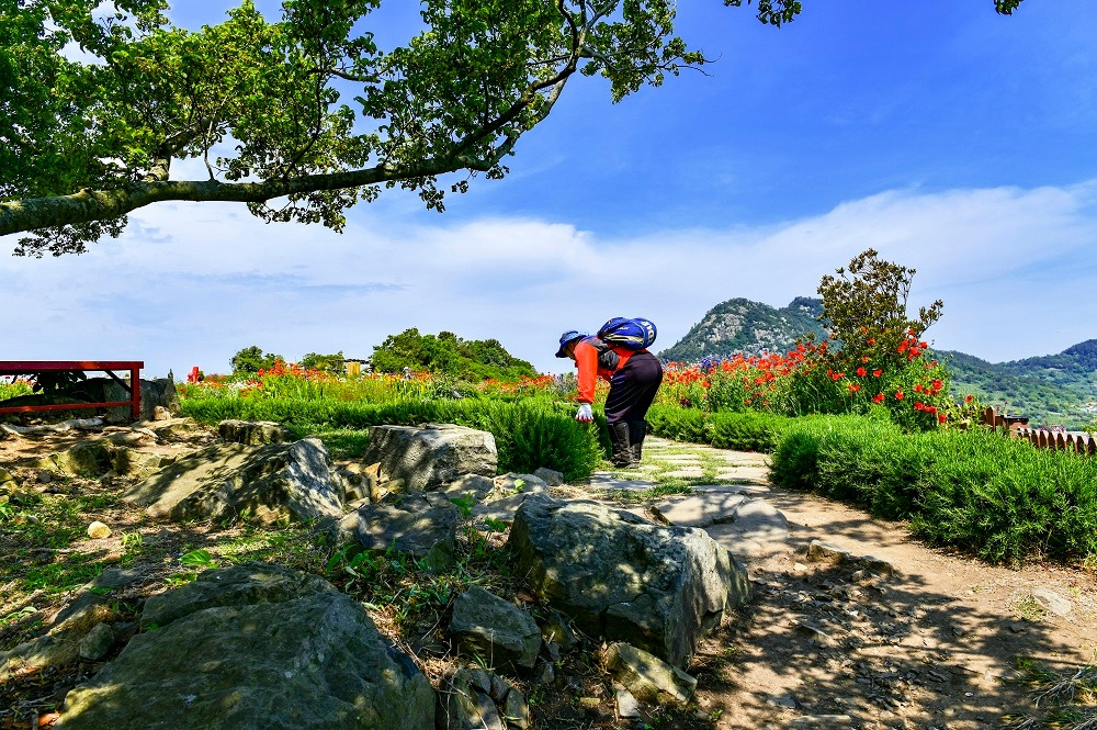 쑥섬 비밀의 정원에 오르는 길목에 어느 할아버지의 묵묵한 노동