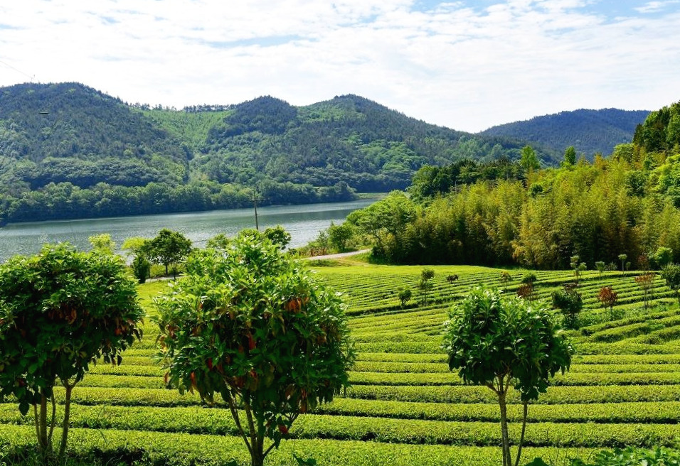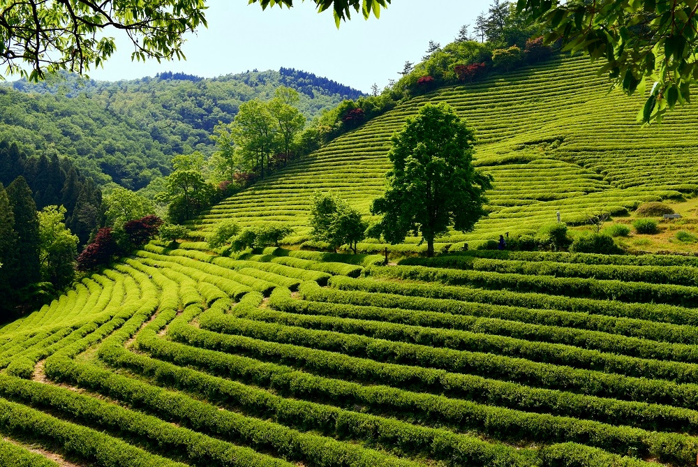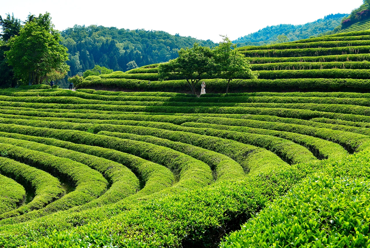 지금 녹색이 한창인 녹차밭은 싱그럽기 그지없다.