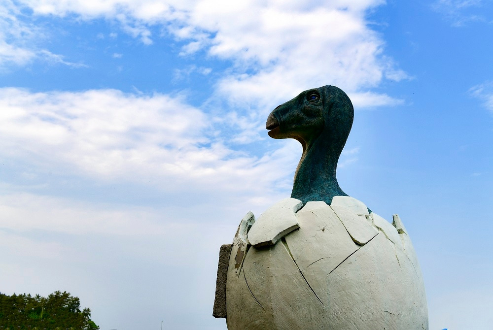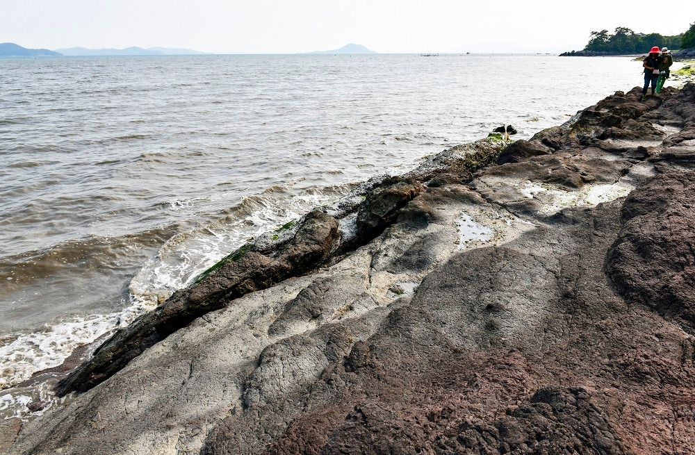 지나는 길에 근처의 '비봉 공룡공원'과 득량면 비봉리 선소 해안 일대에 <공룡알 화석 산지>를 들려보기로 한다. 그 앞바다에 백악기 퇴적층에 공룡알 화석이 많은 자국을 남겼다. 바닷가 데크에서 내려다보면서 1억 년 전의 신비를 상상해 볼만하다.