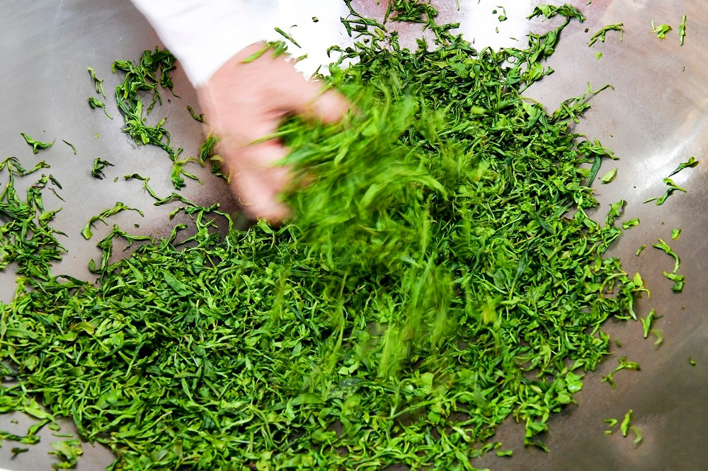 250~300도 고열 가마에서 7분 정도 덖는다. 비빔대에서 비비다가 다시 온도를 낮추어 덖는다. 이렇게 4~5번 반복하면 녹차의 완성이 다가온다. 이렇게 체험하고 마시는 녹차의 맛은 더할 나위 없다.