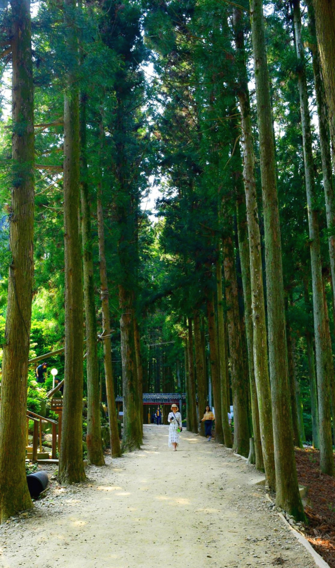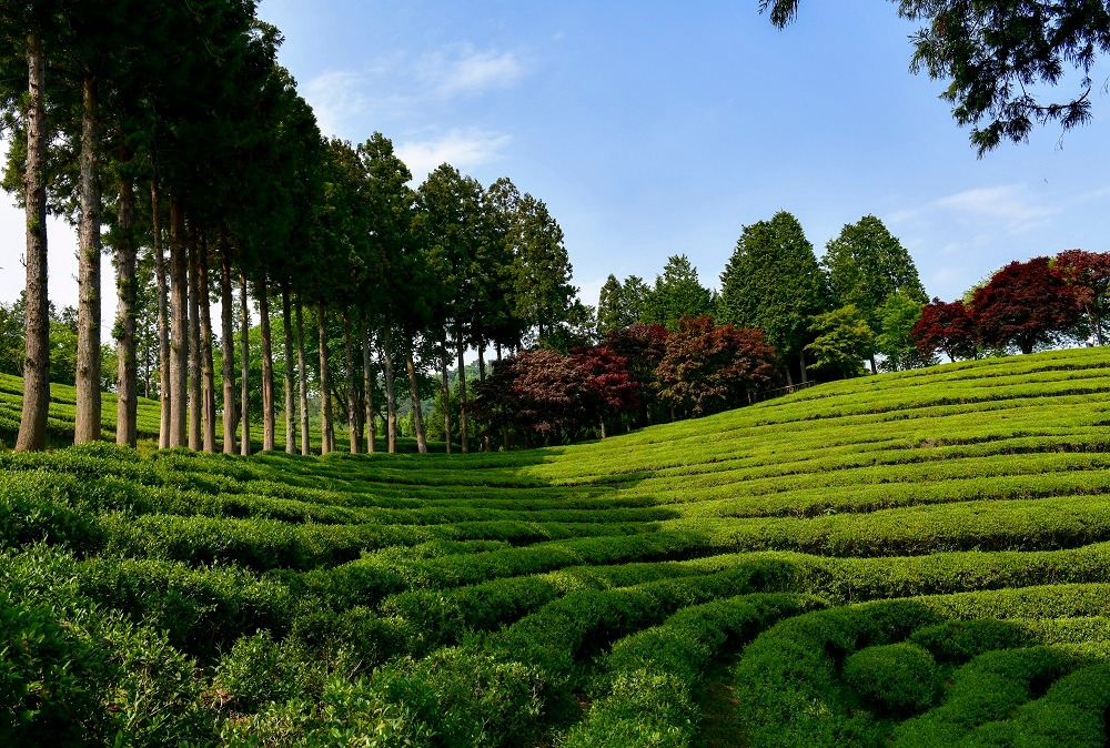 하늘로 쭉쭉 뻗어있는 <삼나무 오솔길>을 걷는 통과의례는 힐링을 먼저 선물 받는 느낌이다. 그리고 눈 앞에 펼쳐지는 녹차밭은 눈을 시원하게 해 준다. 어딜 보아도 출렁이는 초록의 물결이다. 이럴 때 안구정화라는 표현이 적합하다. 그야말로 초록초록이다.