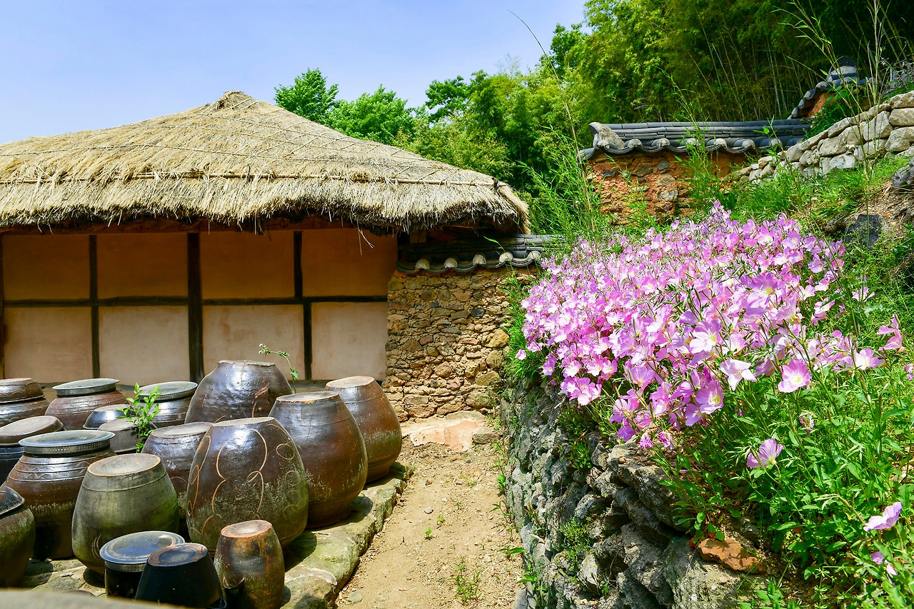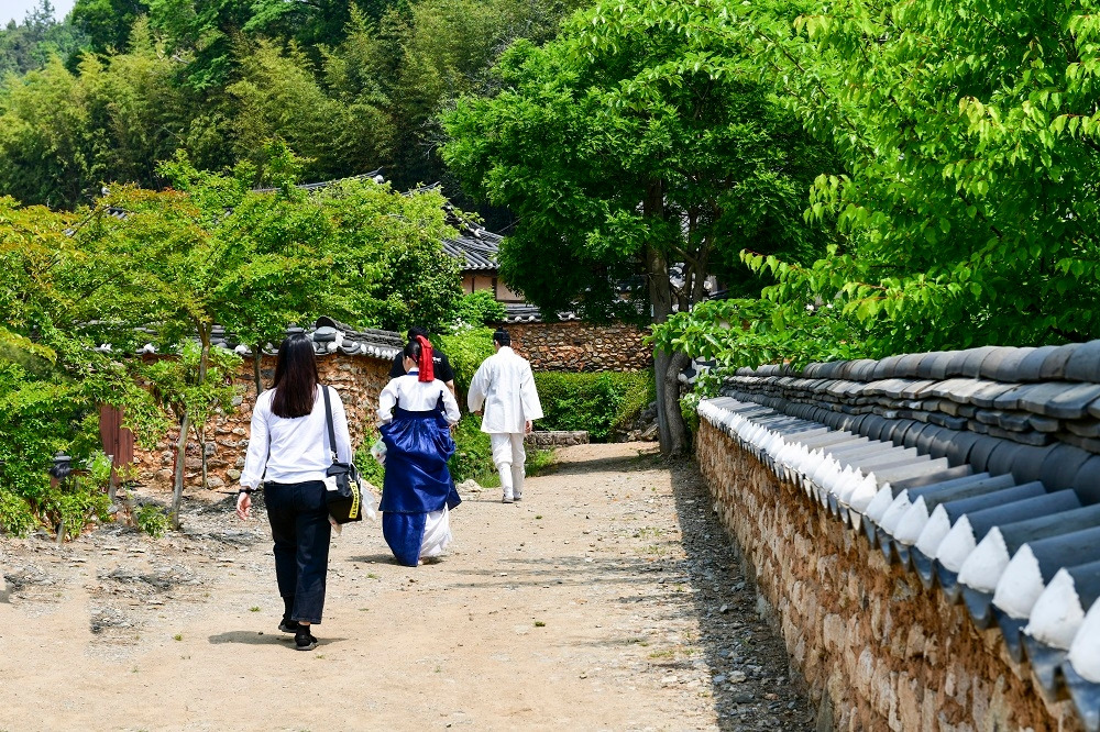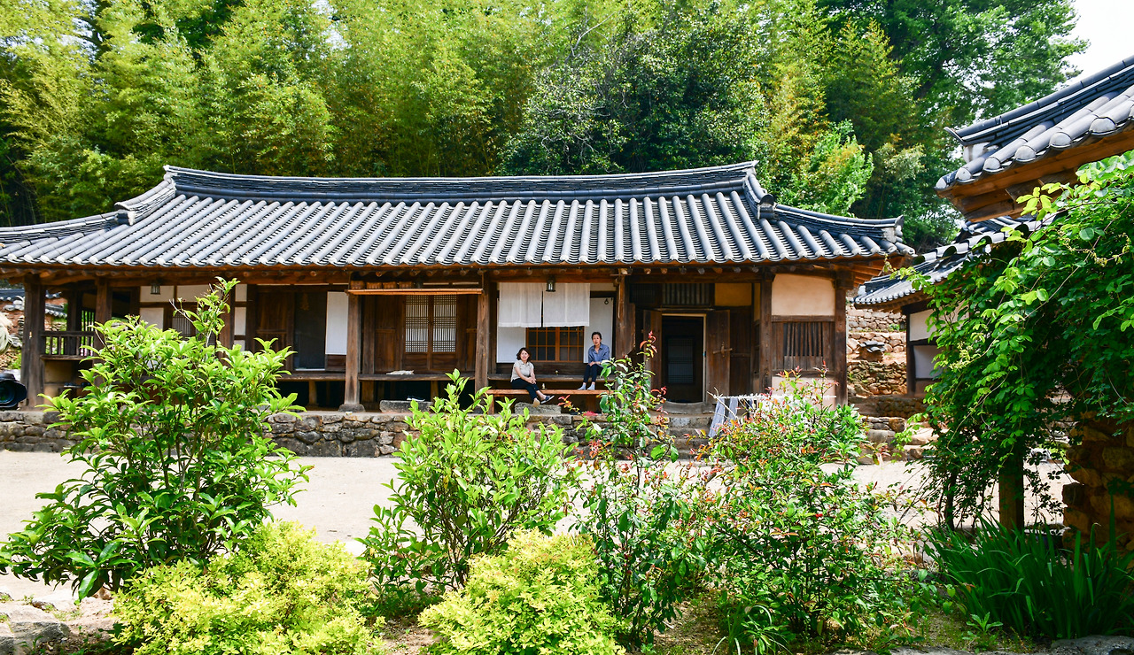 이곳은 광주 이 씨 집성촌으로 전통가옥이 보존되어 있고 중요문화재로 지정되어 있다. 마을 입구의 연못에는 세월을 느낄 수 있는 느티나무가 반긴다. <이용욱 가옥>의 큰 대문을 드니 따스한 한옥의 정취가 양반가옥의 기품이 전해진다. 사람이 살고 있어서 안마당엔 빨래가 마르고 있었고 담 아래엔 꽃들이 환하게 피어 있다.