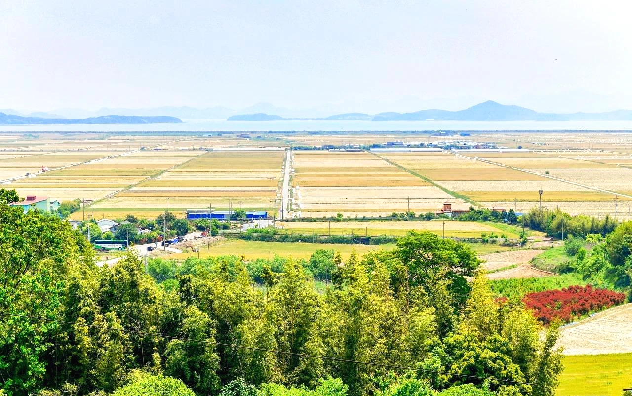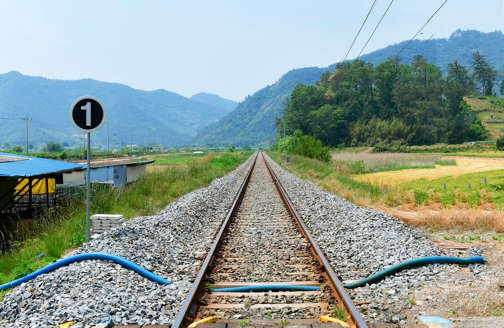 청정 자연의 마을을 나오면서 눈 앞의 득량만과 마을 입구의 기찻길이 초여름 햇볕을 받아 유년시절의 향수를 불러일으킨다.
