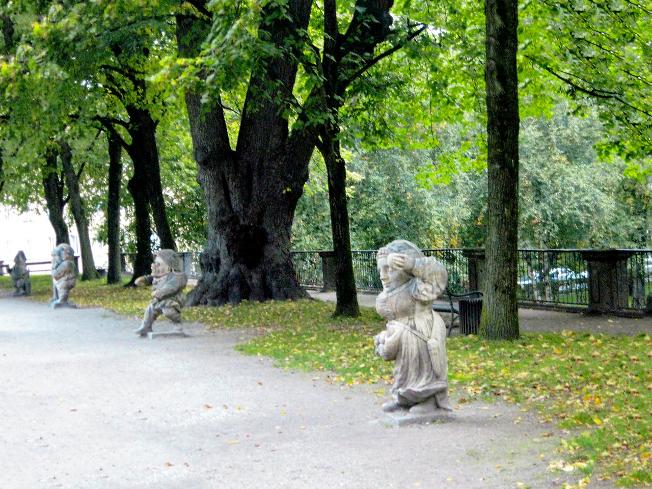 기하학적으로 가꾸어진 아름다운 정원과 그리스 신화의 내용에 따른 분수와 많은 조각상들을 찬찬히 들여다본다.