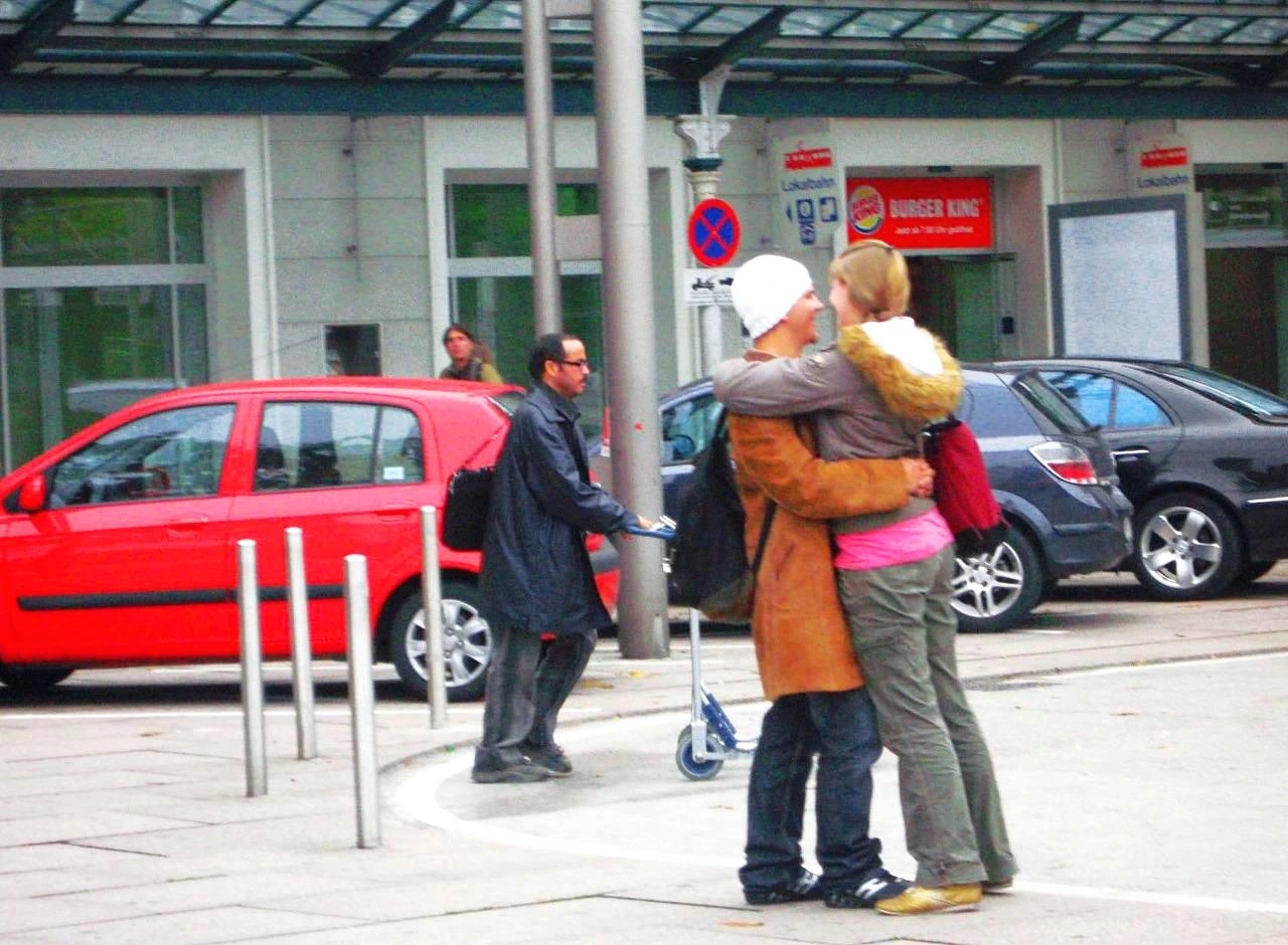 사랑하는 연인들의 조우가 있는 역 앞의 풍경,