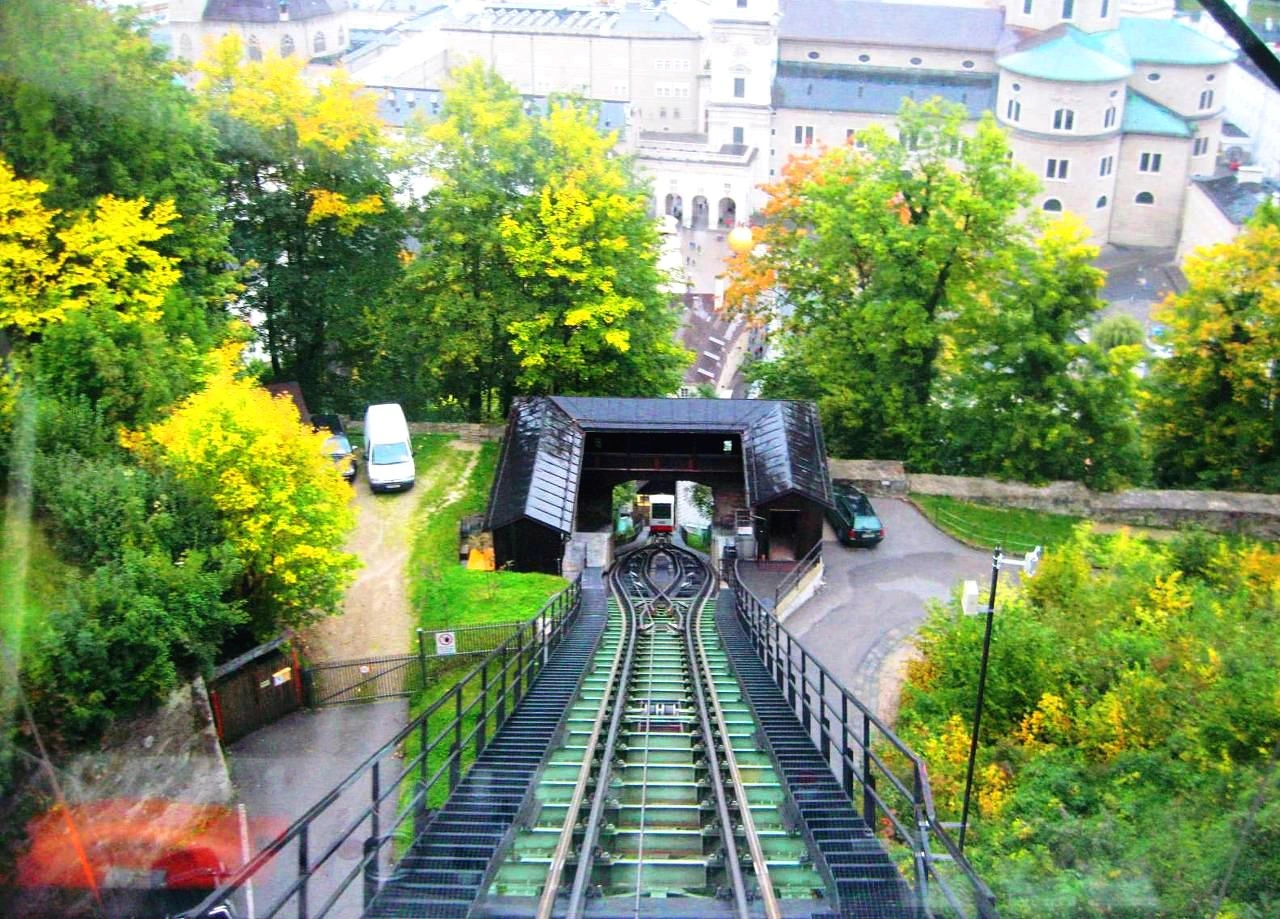 산으로 에워싼 잘츠부르크가 한눈에 보이는 호엔잘츠부르크 성으로 가는 길은 케이블카를 이용하기로 했다.