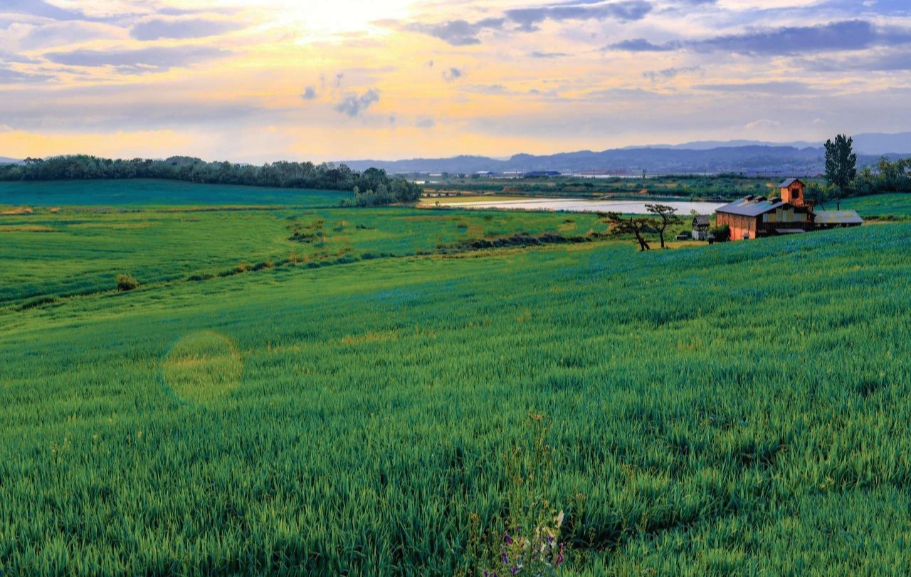 내가 갔을 때는 안개도 일출도 한 점 빛도 그 어느 조건도 시원치 않았다. 하늘도 흐리고 밤사이 내린 비로 군데군데 물 웅덩이를 조심해야 했다. 다만 초록의 보리밭 언덕에 서 있는 것만으로도 더 바랄 게 없다. 산책하듯 보리밭 사잇길을 지나고 풀잎 사이로 반짝이는 물방울이 구르는 것을 쪼그리고 앉아 구경한다.