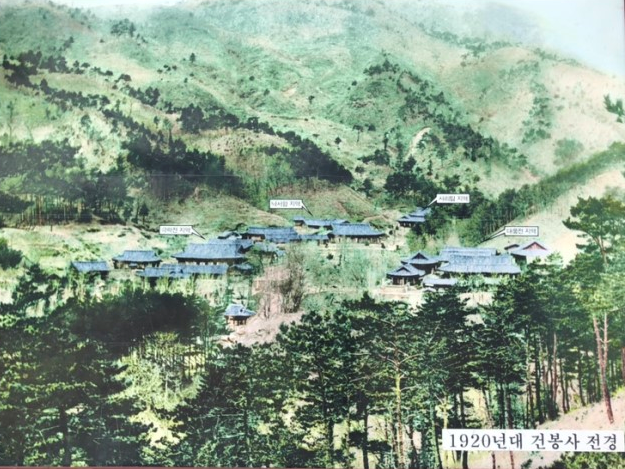 건봉산에서 내려다보면 건봉사가 연꽃 모양을 하고 있다.
