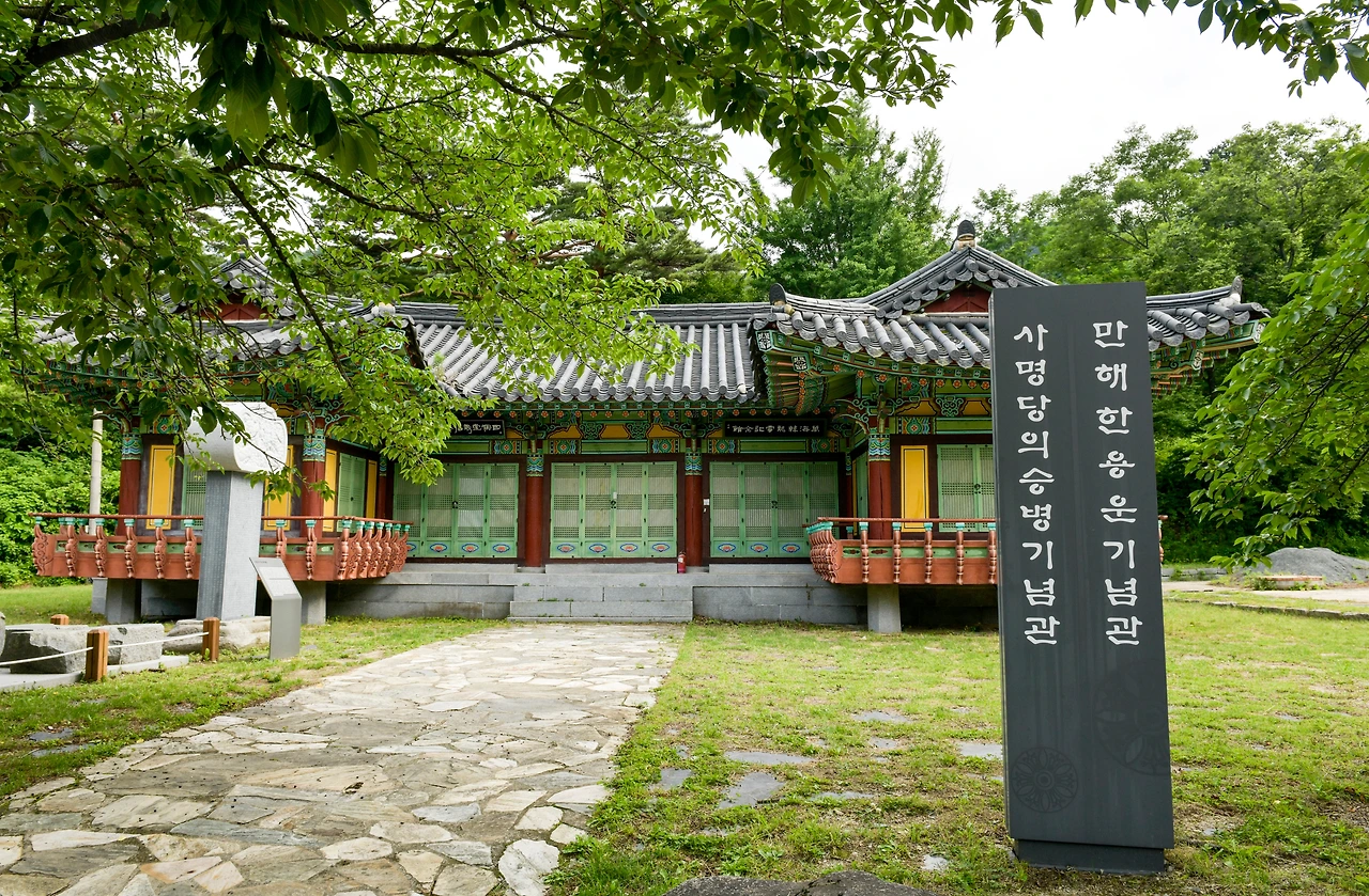 1928년 당시 건봉사 승려였던 만해 한용운은 대화재로 사라진 자료를 수집해서 ‘건봉사와 그 말사의 사적’을 발간했다. 두 분을 기리는 기념관.