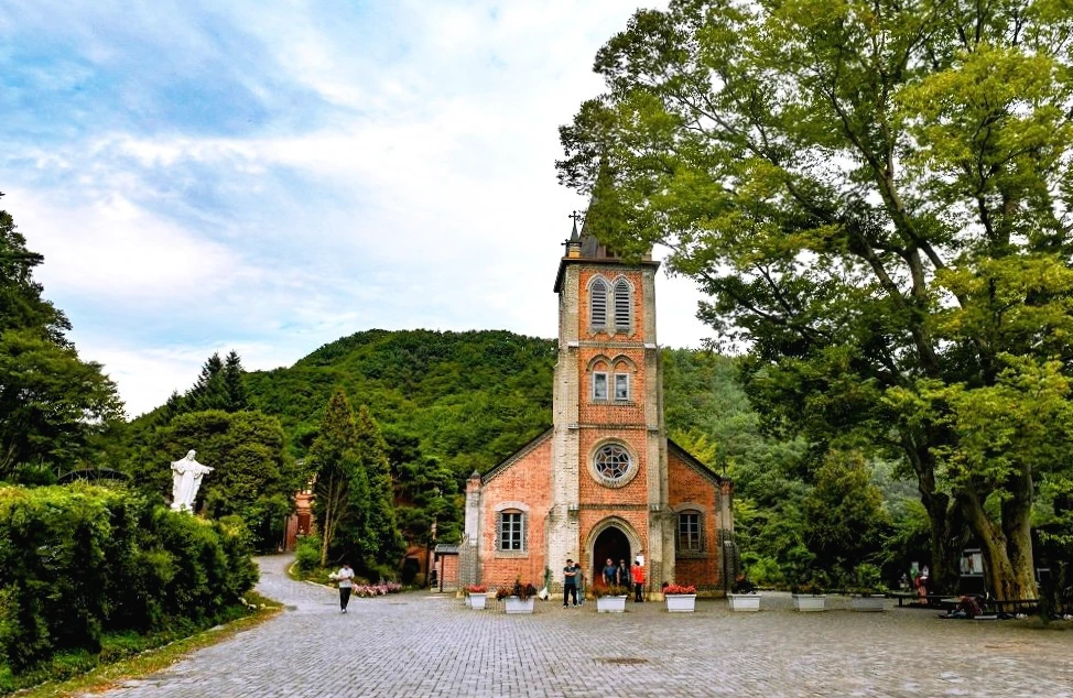 산골마을 안쪽으로 들어가면 나즈막한 산아래의 고딕 양식의 성당이 고풍스럽고 잘 어울린다. 서울 약현성당, 완주 되재성당, 명동성당에 이어 한국에서는 4번째로 한국인 신부가 건축한 성당이다.