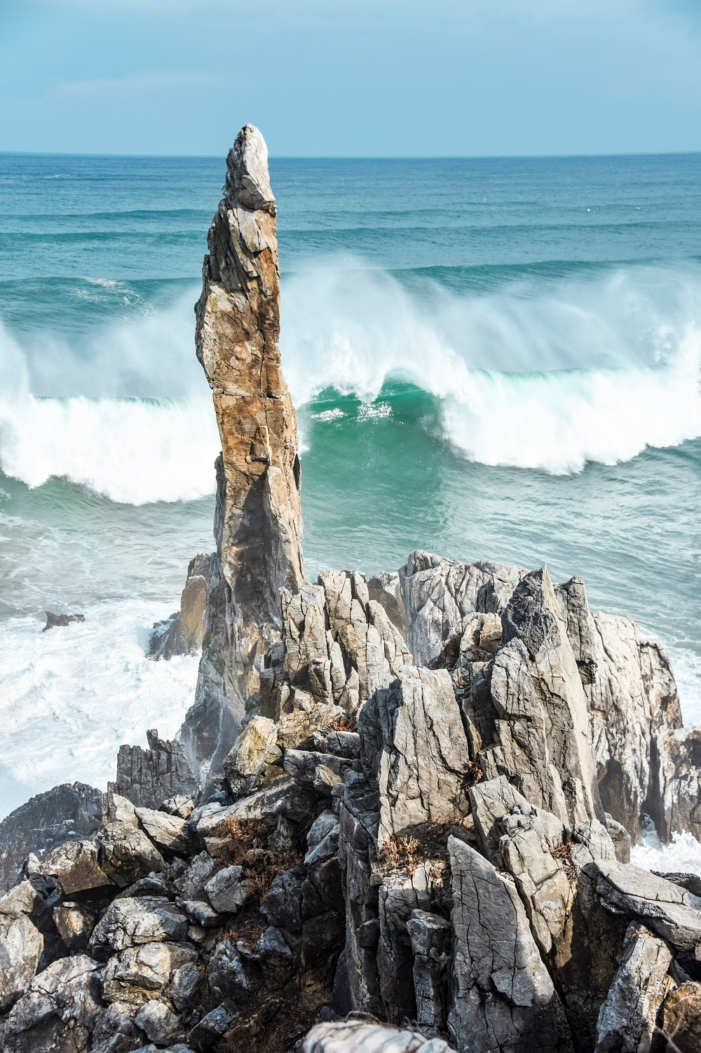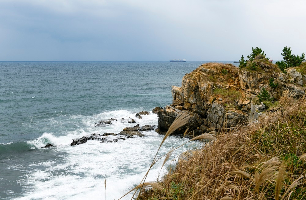 군부대가 있는 곳이어서 바다 쪽으로 철조망이 드리워져 있다. 그러나 소나무 숲길과 바람이 심하게 불어대던 방파제에 올라 바다를 바라보는 시간도 흐뭇하다. 산 위의 지진해일 대피지역을 지나고 바다를 바라보며, 바위섬과 어우러진 크고 작은 해안 절벽을 걸으며, 달리는 기찻길 옆을 지나며 산바람 바닷바람을 원없이 만났다.