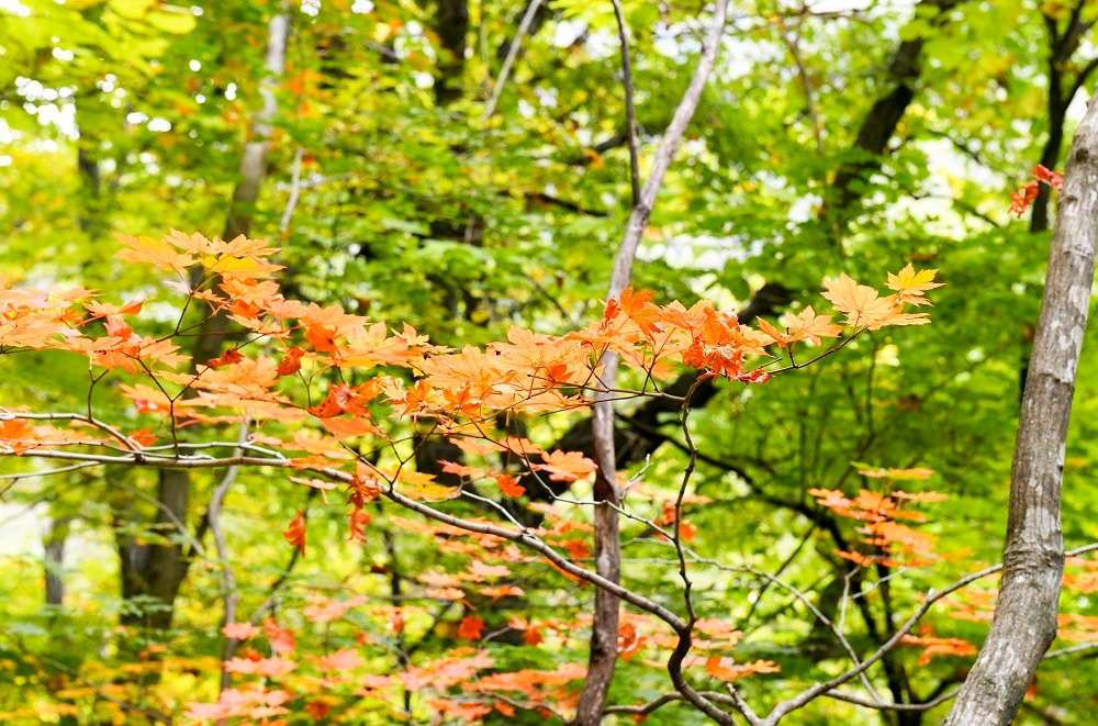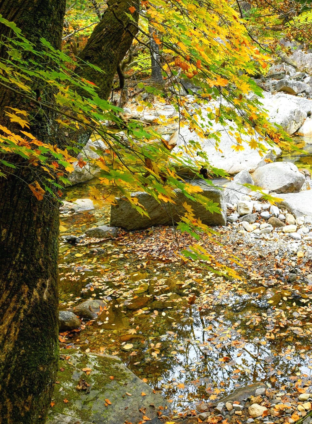 지난 봄날 북상하는 꽃 소식을 들었는데 이제는 윗 지역에서 내려오는 단풍 소식을 알리고 있다. 지난주 이틀 동안 단풍이 시작되는 산속에 풍덩 빠져 쏘다녔다. 엄청난 폭염도, 거친 태풍도 지나간 그곳엔 단풍으로 의연하게 숲을 이룬 자연이 있었다. 동해의 무릉 계곡 산길은 단풍도 물론 좋지만 걷기에 적당한 정도의 거리다.
