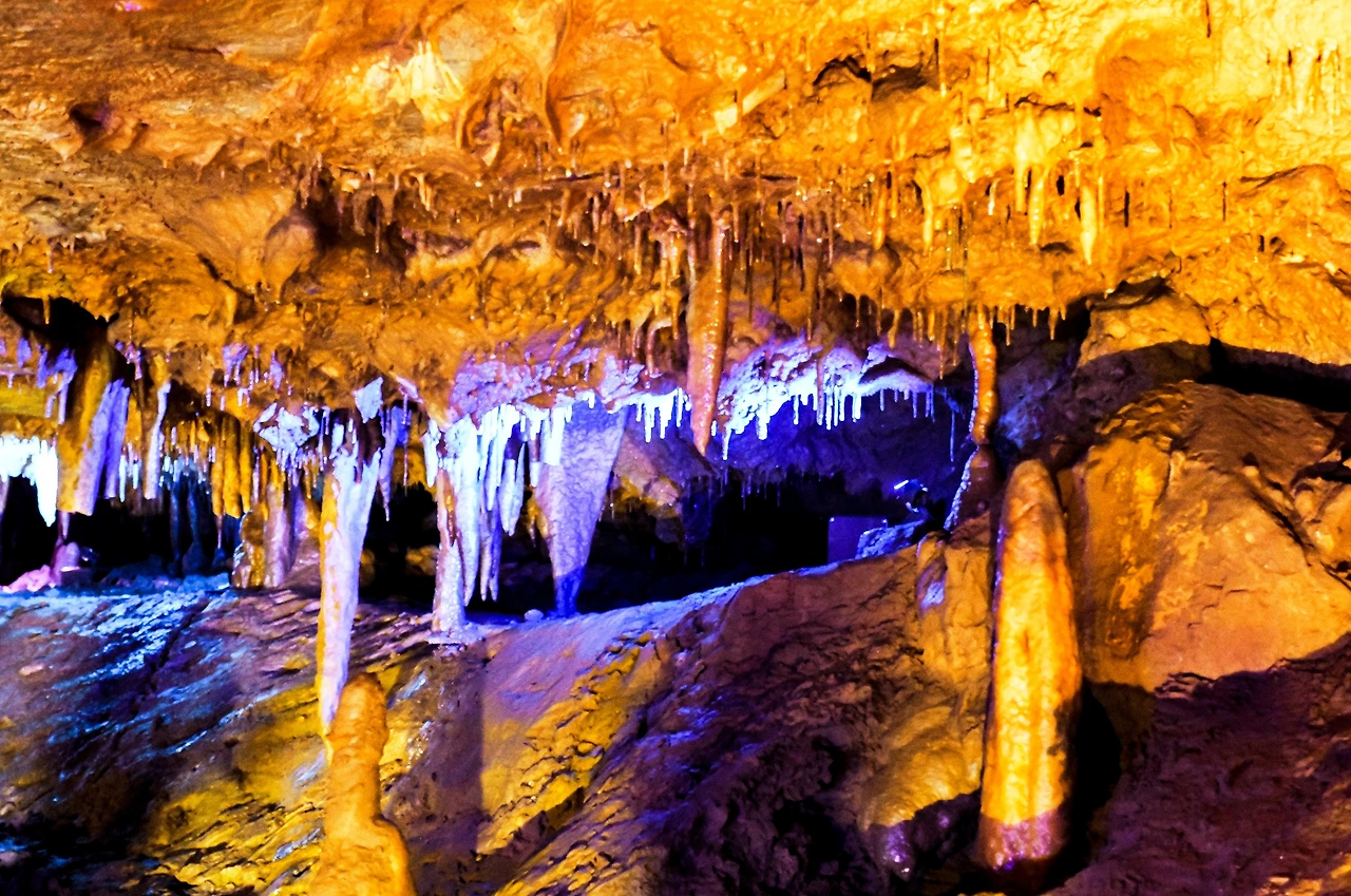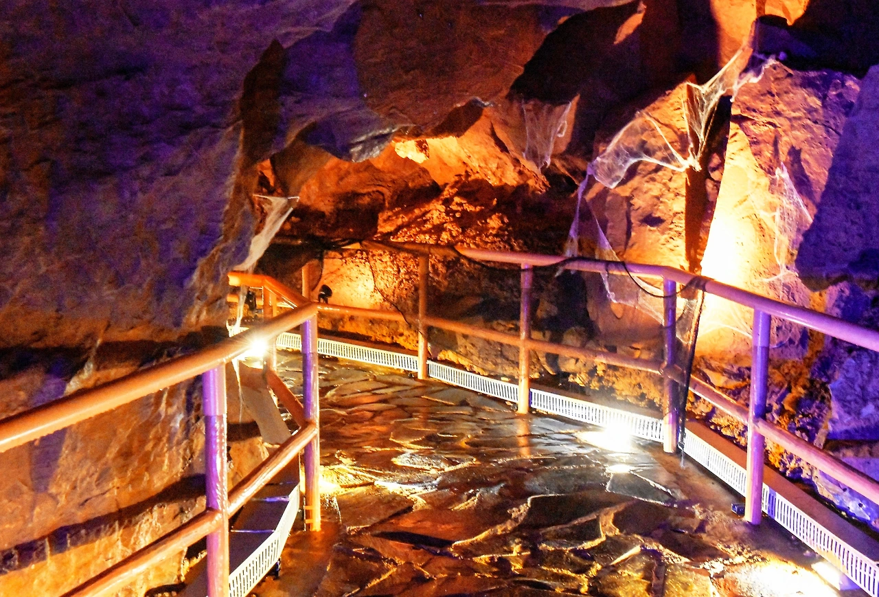 입장권을 사고 안전모를 쓰고 동굴 안에 드니 서늘하다. 수억 년을 이어온 종유석, 석순과 석주 등이 주렁주렁 조명등과 함께 신비롭다. 동굴 안에 박쥐 모양의 석순이 있었다. 몇 년 전 멸종위기의 황금박쥐가 서식했다는 언론 보도가 있기도 했다. 다양한 모양의 석순들이 생김새에 맞는 이름표를 달고 있다.