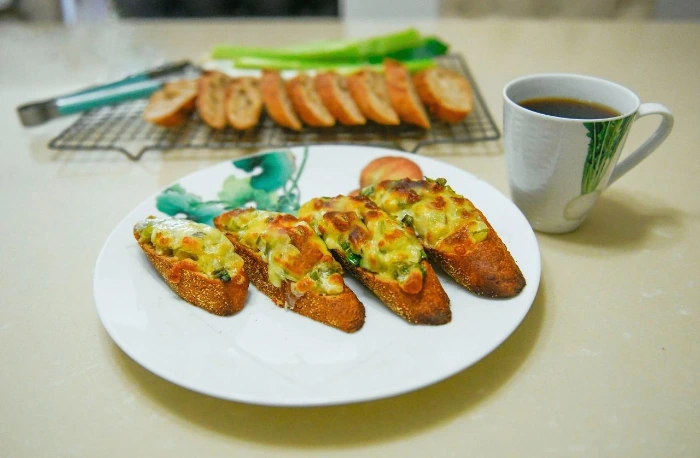 * 재료: 바게트. 대파. 버터. 크림치즈. 마요네즈. 연유. 소금. 설탕