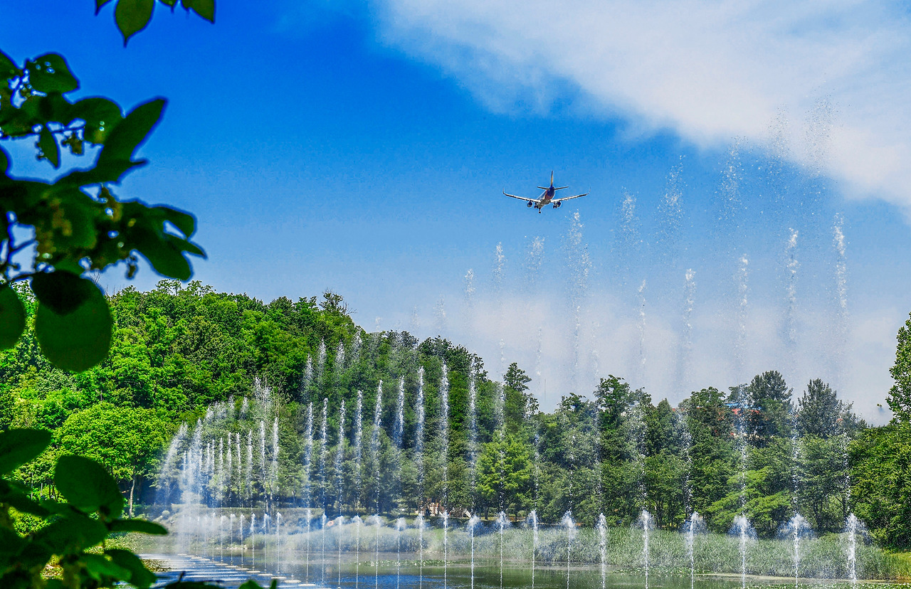 분수의 노즐이 41개나 된다. 이착륙 시 항공기 소음 81db 이상을 감지하여 자동 작동되어서 멋지게 뿜어낸다.