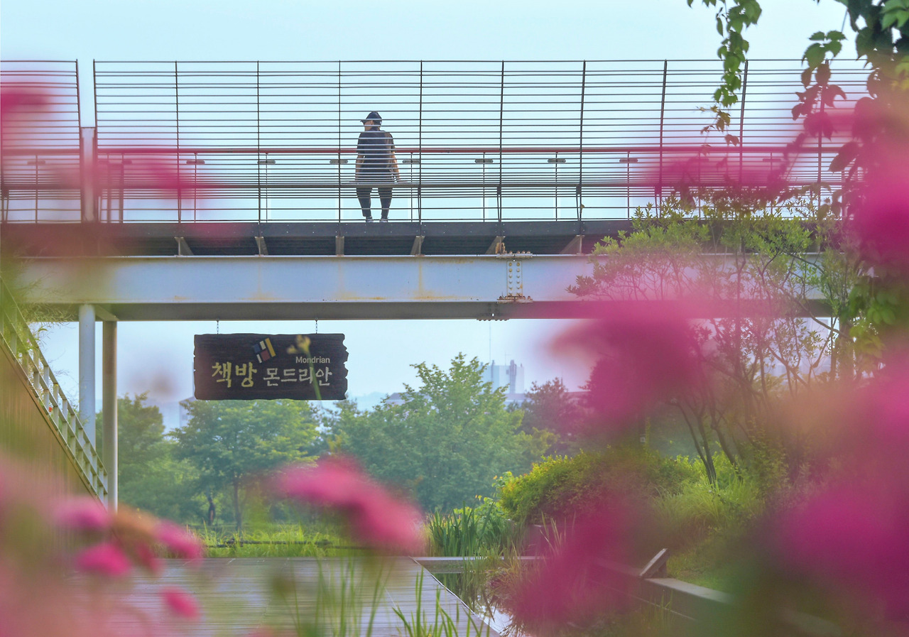전체적으로는 예전 정수장 침전조 건물을 재활용하면서 기존의 골조를 그대로 살리는 자연스러움을 보여준다. 이곳에서 운동을 하거나 자연을 누리며 휴식을 한다. 공원 한편에 ‘몬드리안 책방’도 있어서 조용히 앉아 책을 읽거나 분위기 있는 시간을 보내기도 한다.