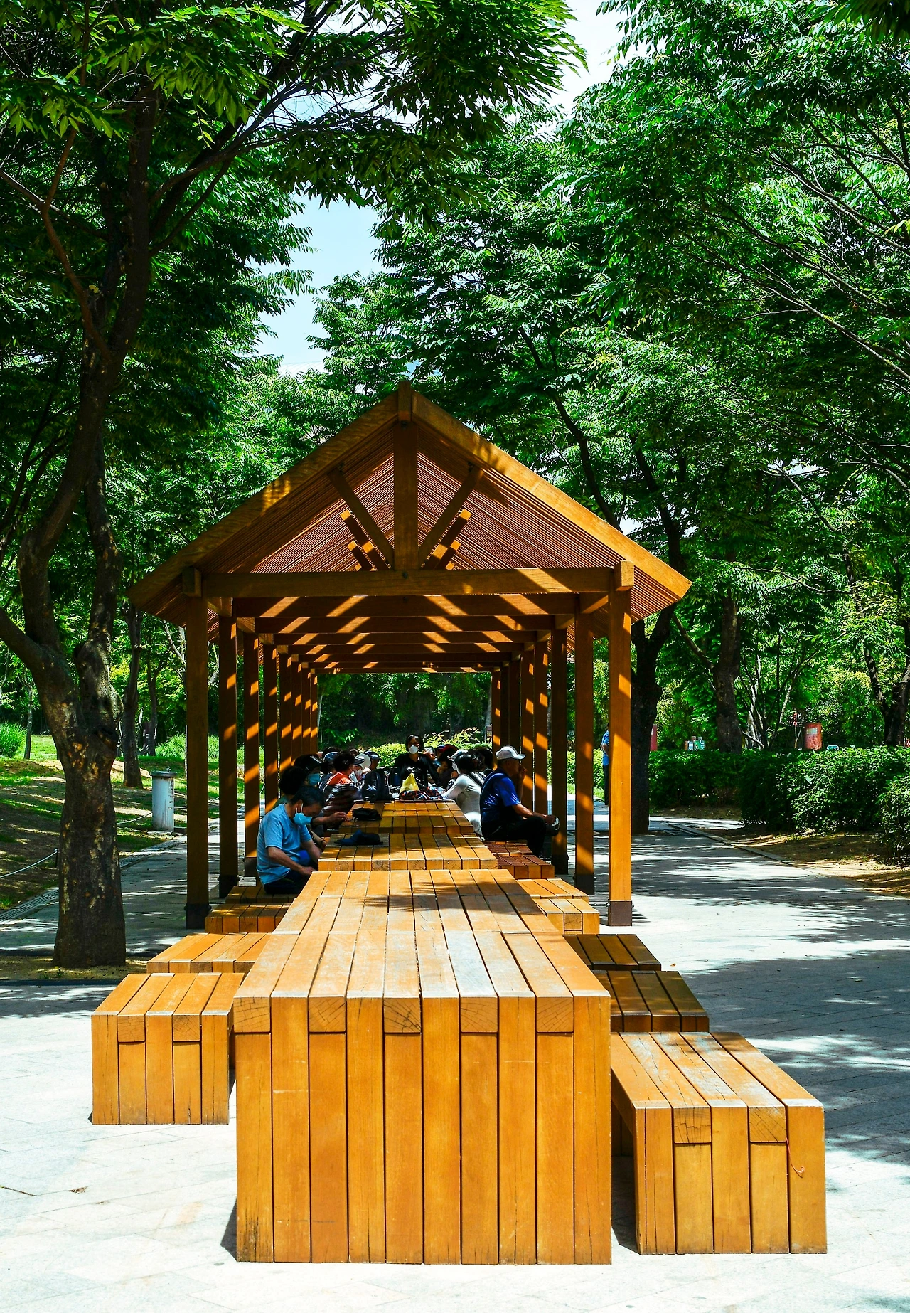 예전엔 100명이 앉을 수 있는 빨간색 식탁이 있었다. 이 식탁에서 주변 학교 학생들의 야외수업이나 모임, 그리고 좋은 사람들과 맛있는 도시락을 먹는 풍경을 볼 수 있었다. 공원 초입의 '백인의 식탁'이 인상적인 곳이다. 지금은 자연스러운 나무 식탁으로 바뀌었다. 공원에 어울리는 친환경 100의 식탁이다.