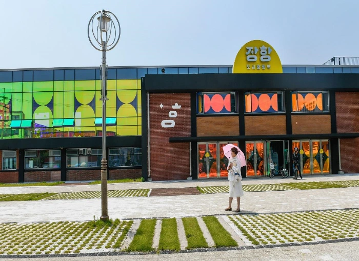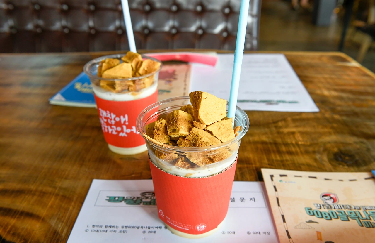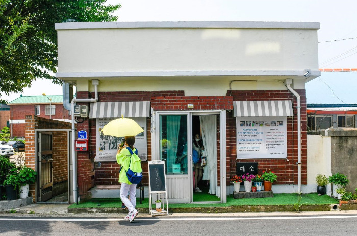 그 옆에 야외 의자에 앉아 여유롭게 휴식하고 있는 사람들,