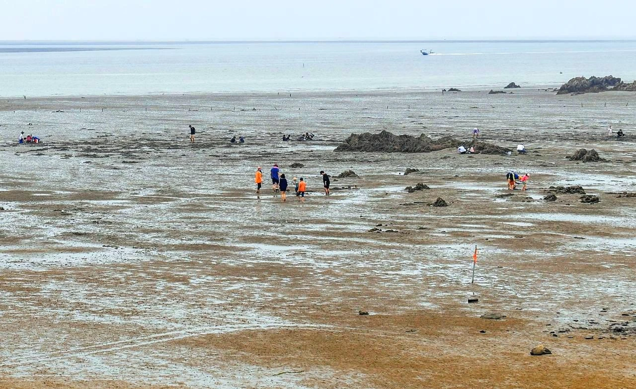 모래 갯벌에서 노니는 사람들과의 조화로움,
