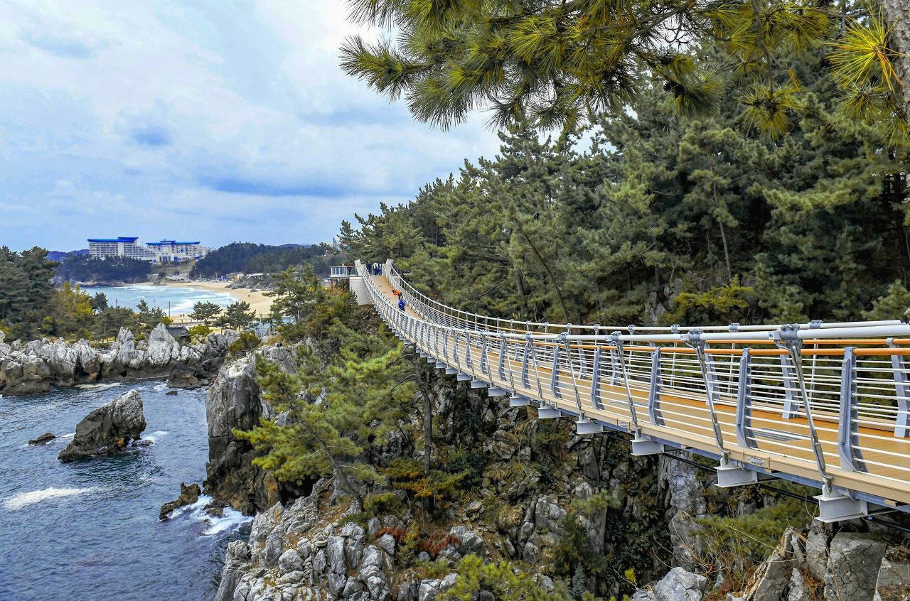 추암 출렁다리. 해상 출렁다리로 국내에서는 유일하게 바다 위에 지어진 출렁다리라고 한다.