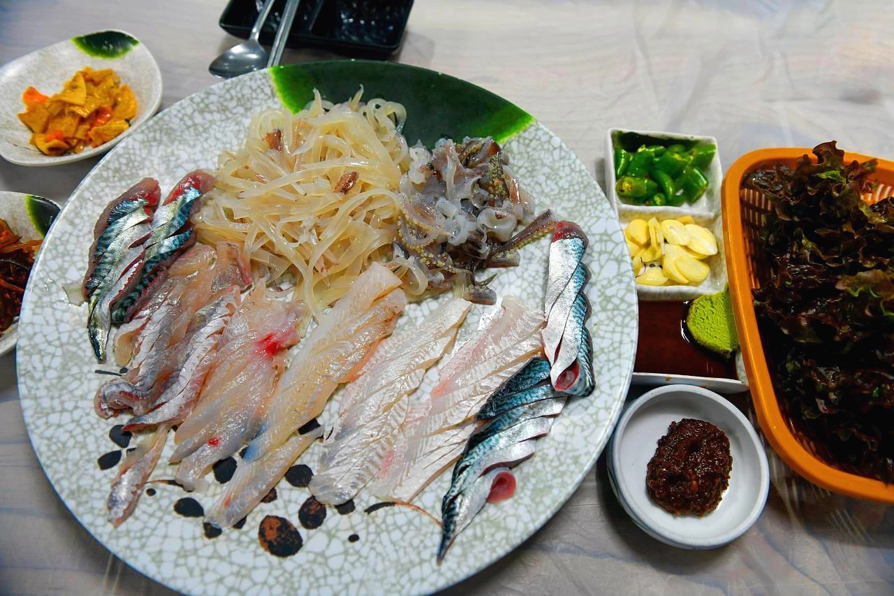 활어센터에서 펄떡이는 생선 몇 가지 골라 회 떠주는 집에 가서 먹는다. 동시에 생선회, 초장, 매운탕이 해결된다. 또는 포장~