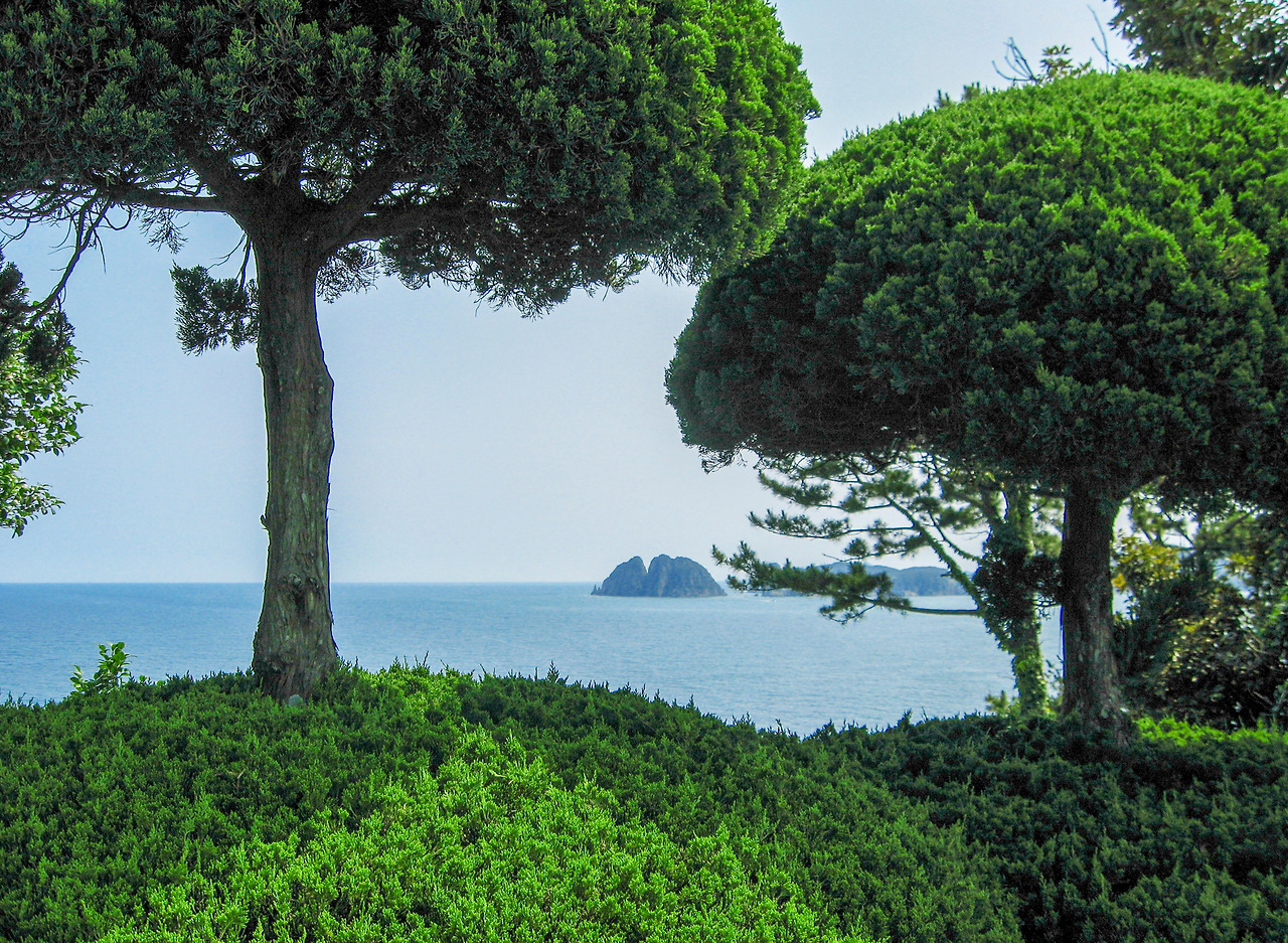 그 시선 앞에는 아열대 식물이 초록 초록, 지중해를 연상시키는 남국의 정취가 물씬, 풀밭 위의 조각 작품들이 자연 속에서 멋지게 어울렸고, 저 앞으로는 푸른 바다가 펼쳐져 있다. 예전에 어른들이 하던 말을 이젠 내가 한다. '좋오~을 때(였)다...'