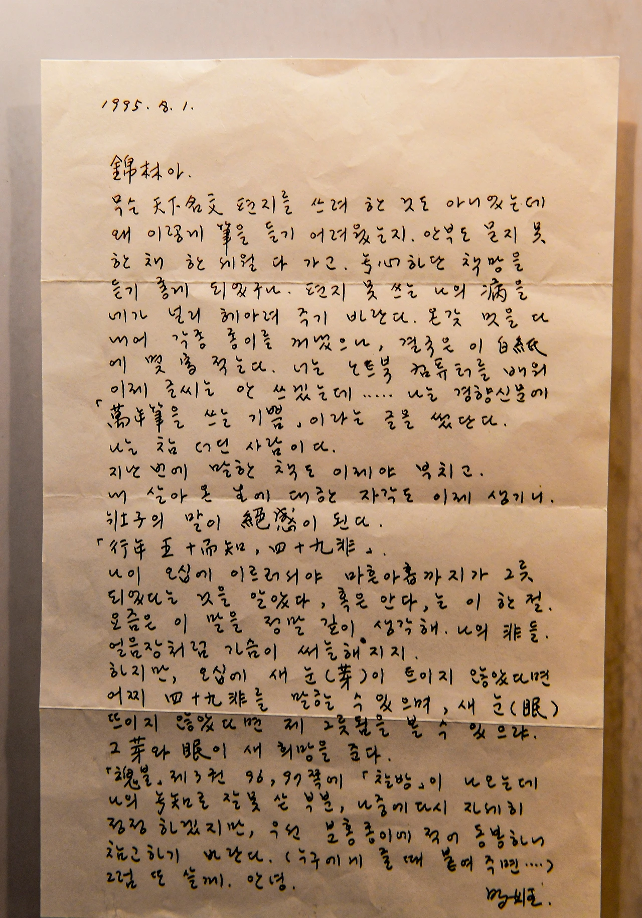 하지만 오십에 새 눈(芽)이 트이지 않았다면 어찌 四十九非를 말할 수 있으며 새 눈(眼)이 뜨이지 않았다면 제 그릇됨을 볼 수 있으랴... 그 芽와 眼이 새 희망을 준다."
