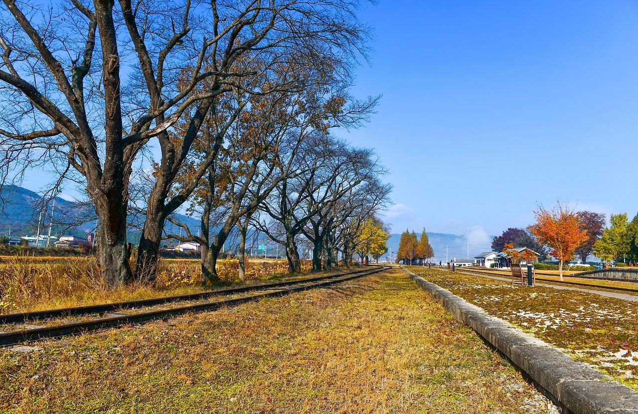 기차가 다니지 않아서 마음 놓고 이리저리 다닐 수 있어서 좋다. 오래전 기차가 멈춘 녹슨 기찻길은 직선과 곡선과 원형의 철길이 독특한 곳이다. 메타세쿼이아와 등나무의 짧은 터널 옆에는 흰색으로 잘 단장된 역무원 관사가 있다. 그 옆의 역장 관사는 영화 동주의 하숙집으로 촬영되었다고 한다. 이곳은 1930년대의 고풍스러운 모습을 그대로 살려 다다미가 깔린 일본식 가옥으로 영화 촬영은 물론이고 체험학습도 하는 곳이다.