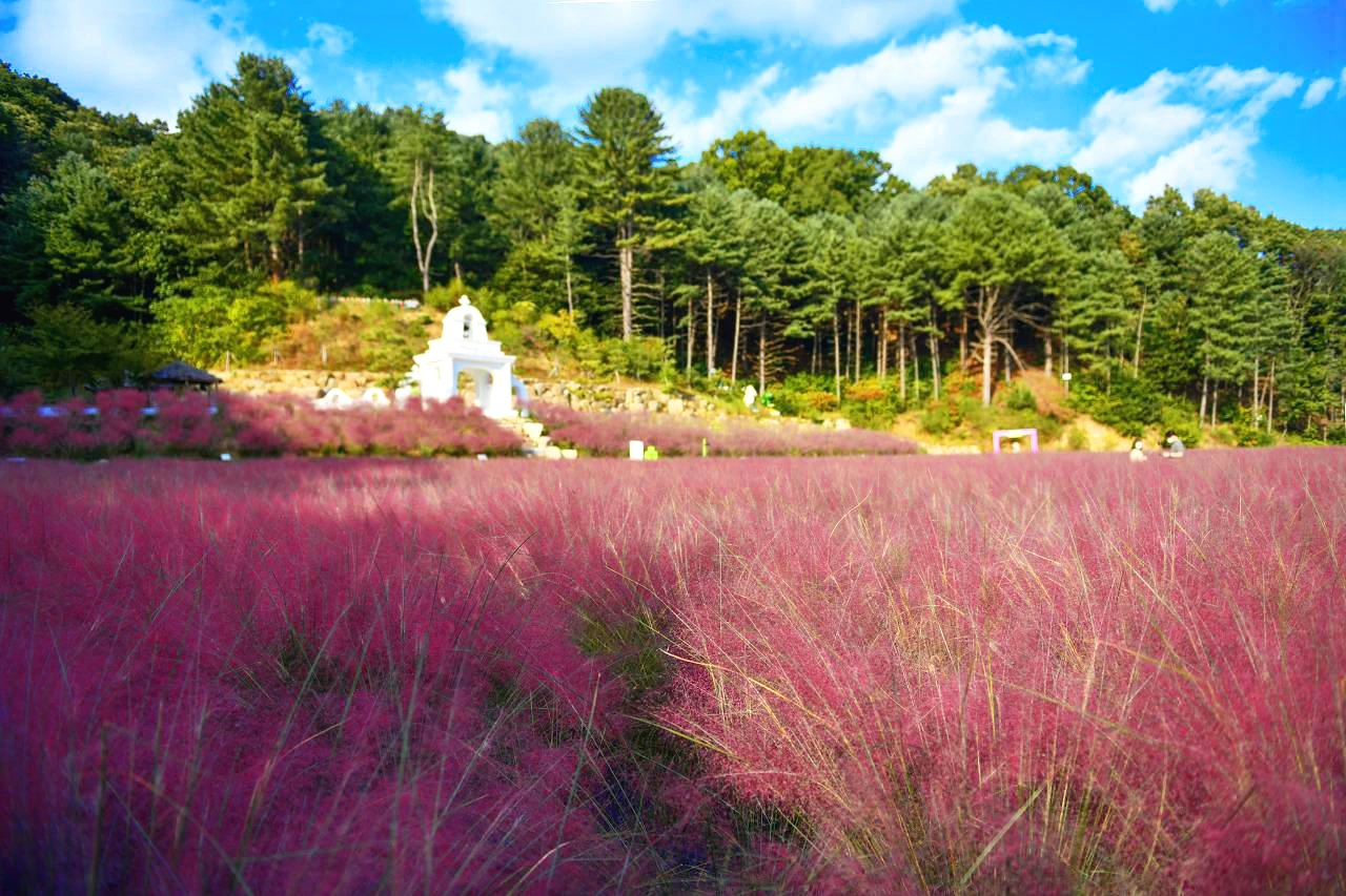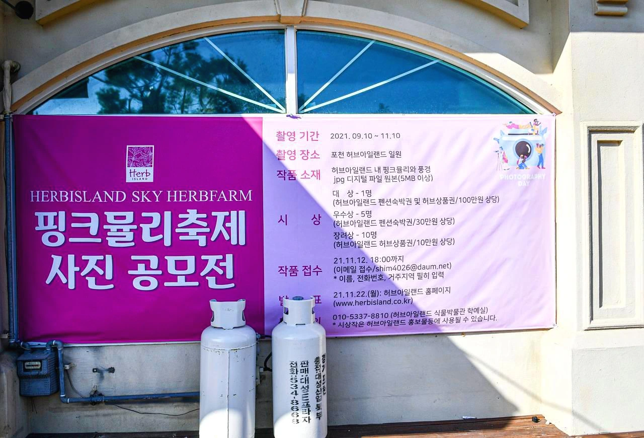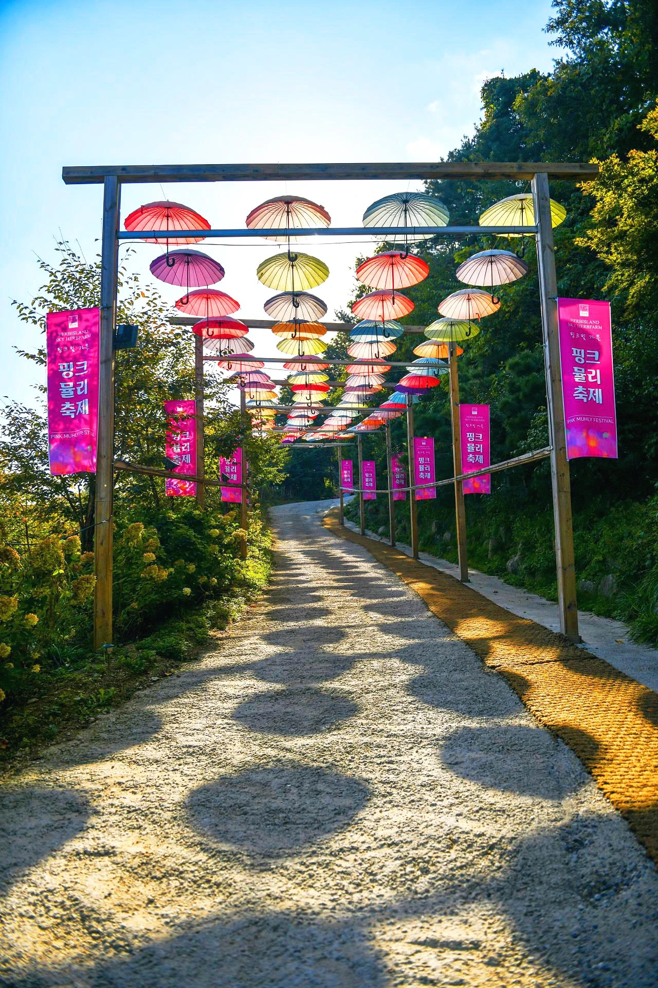 일단 언덕 위로 한참 걸어 스카이허브팜에 올라 핑크뮬리 먼저 볼 참이다. 몇 년 전부터 사람들에게 부쩍 관심받고 있는 핑크뮬리가 이곳에서도 핑크핑크 하다. 오르막 길 위로 다양한 색감의 우산 소품들이 하늘 높이 두둥실~. 일단 들뜬 마음으로 높이 올라가 요즘의 가을의 전령이 되어버린 핑크뮬리에 담뿍 빠져보고 나올 것이다.